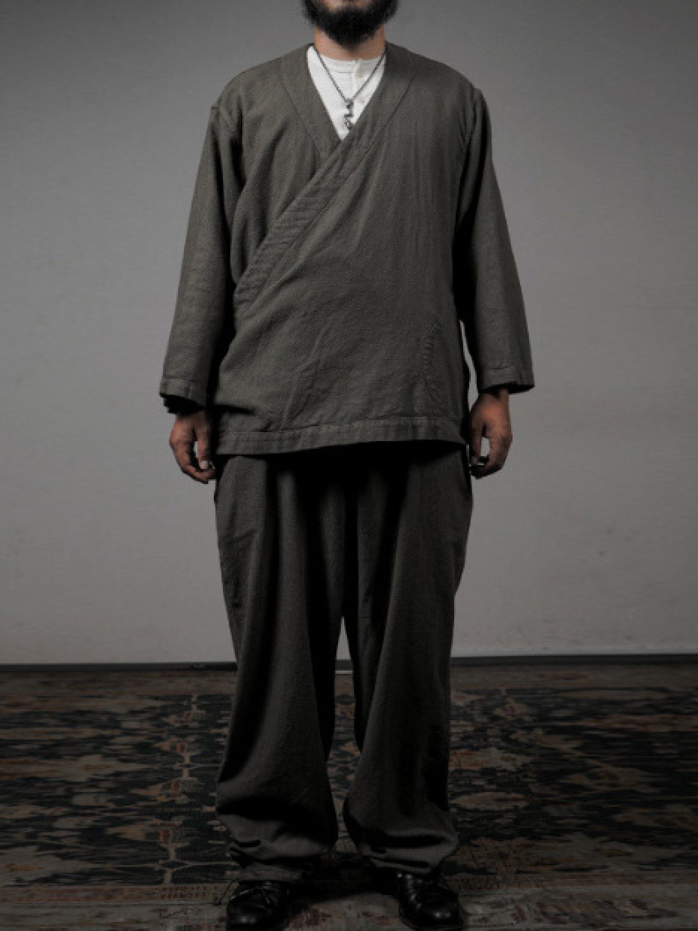 ミリタリーの無骨さと和のエッセンスを融合した、他にないカジュアルセットアップの提案です。