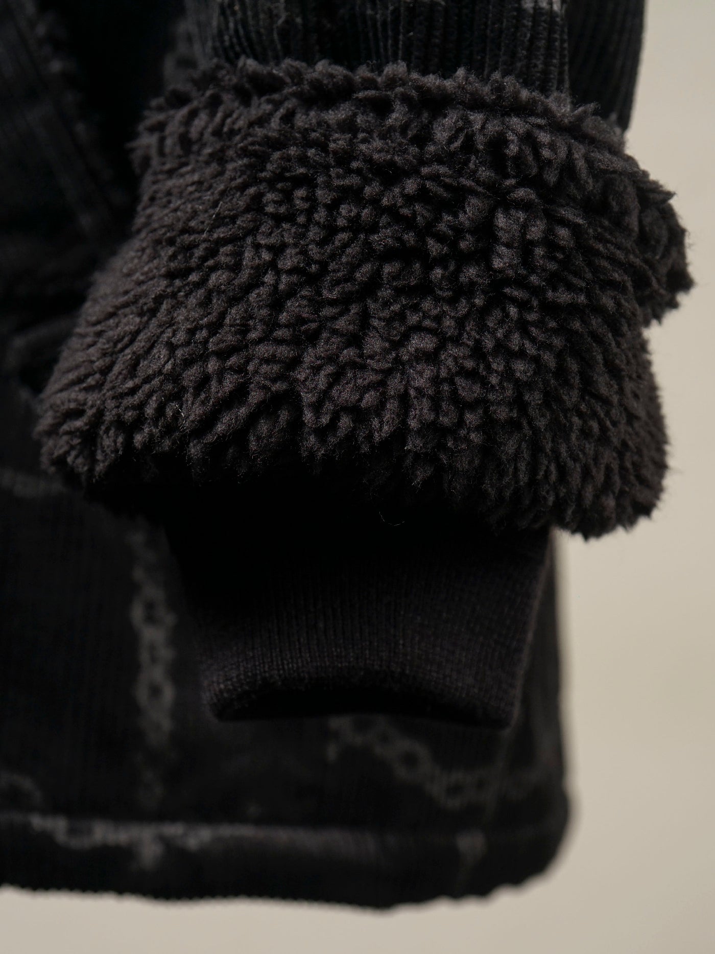 かつて反逆者やアウトサイダーが好んで彫ったヴィンテージチェーンや有刺鉄線のタトゥーデザインを特殊なプリント技法を用い、ふっくらとした素材感を損なわないようエンボスのような立体的な柄を表現しています。