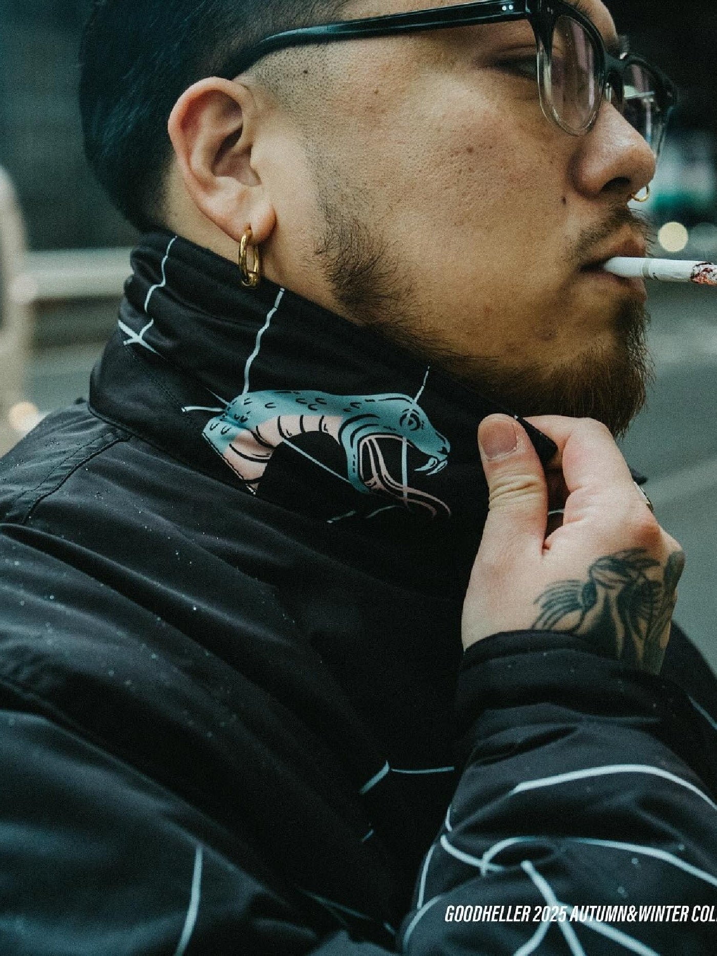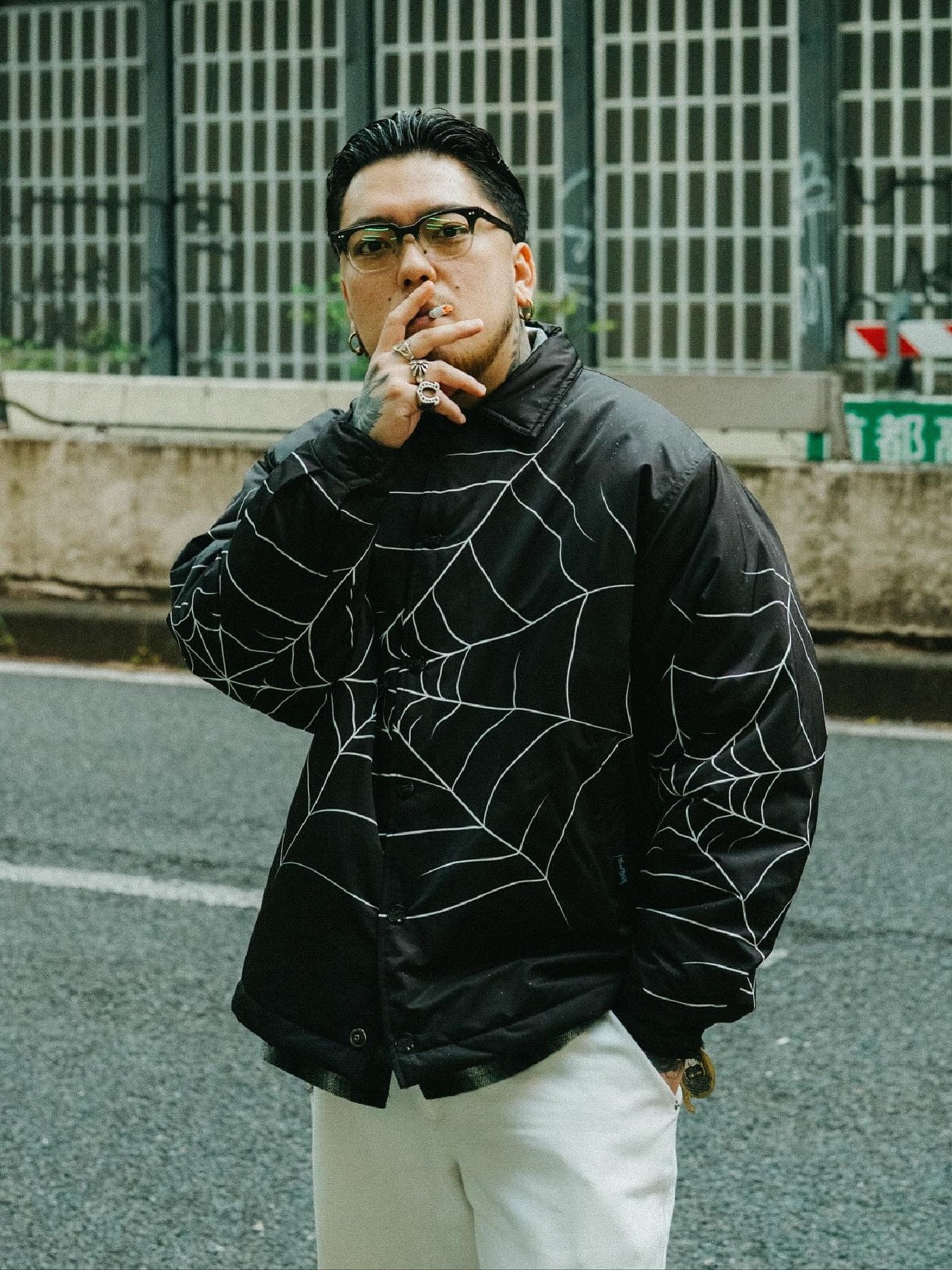 【11.8 (Sat) 12:00 Release】GOOD HELLER | SPIDER WEB PATTERN PADDED COACH JACKET