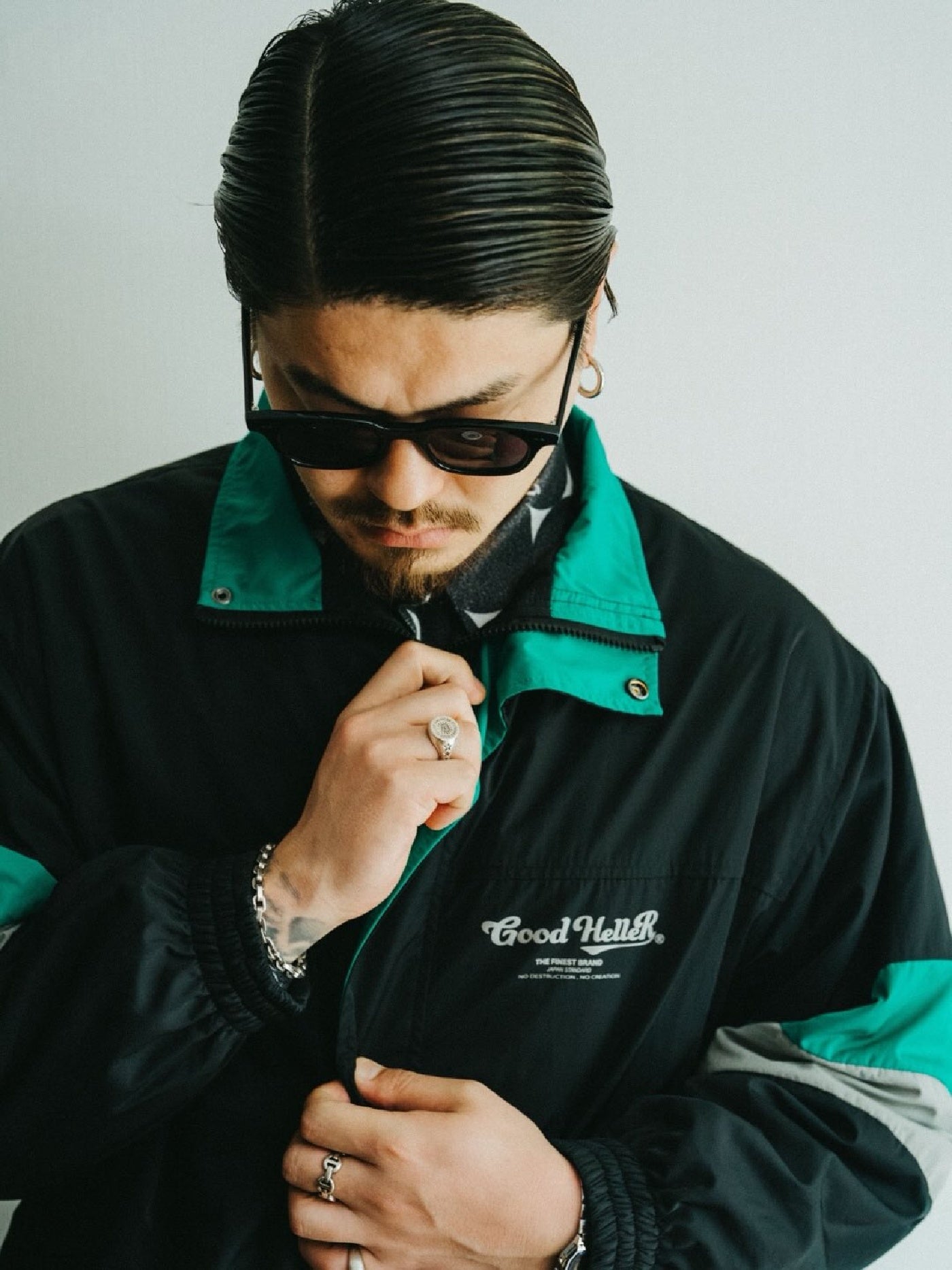 【2.21 (Sat) 12:00 Release】GOOD HELLER | STAND COLLAR NYLON JACKET - Black/Green