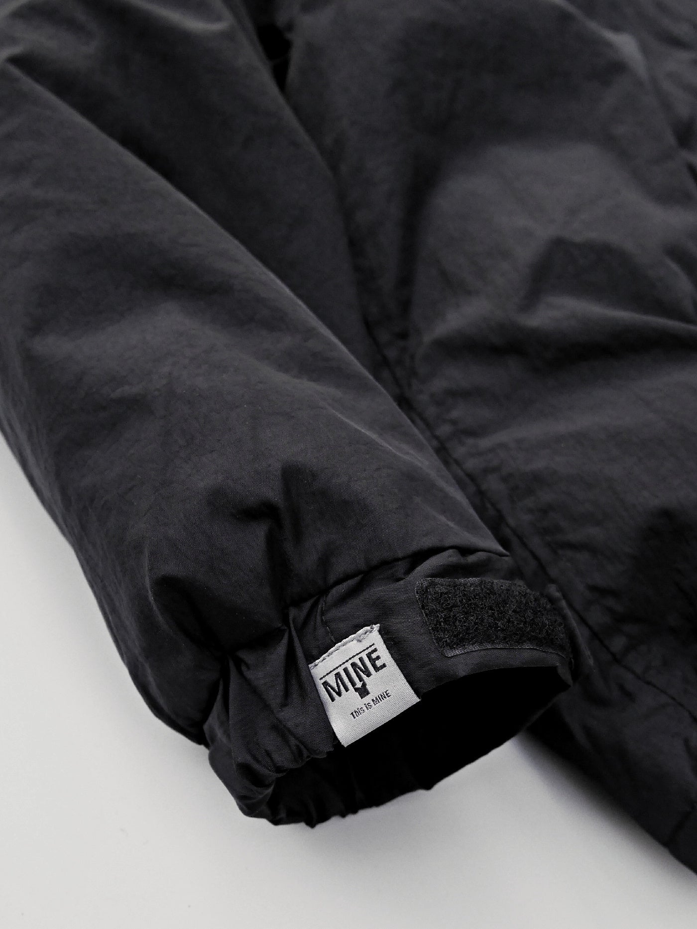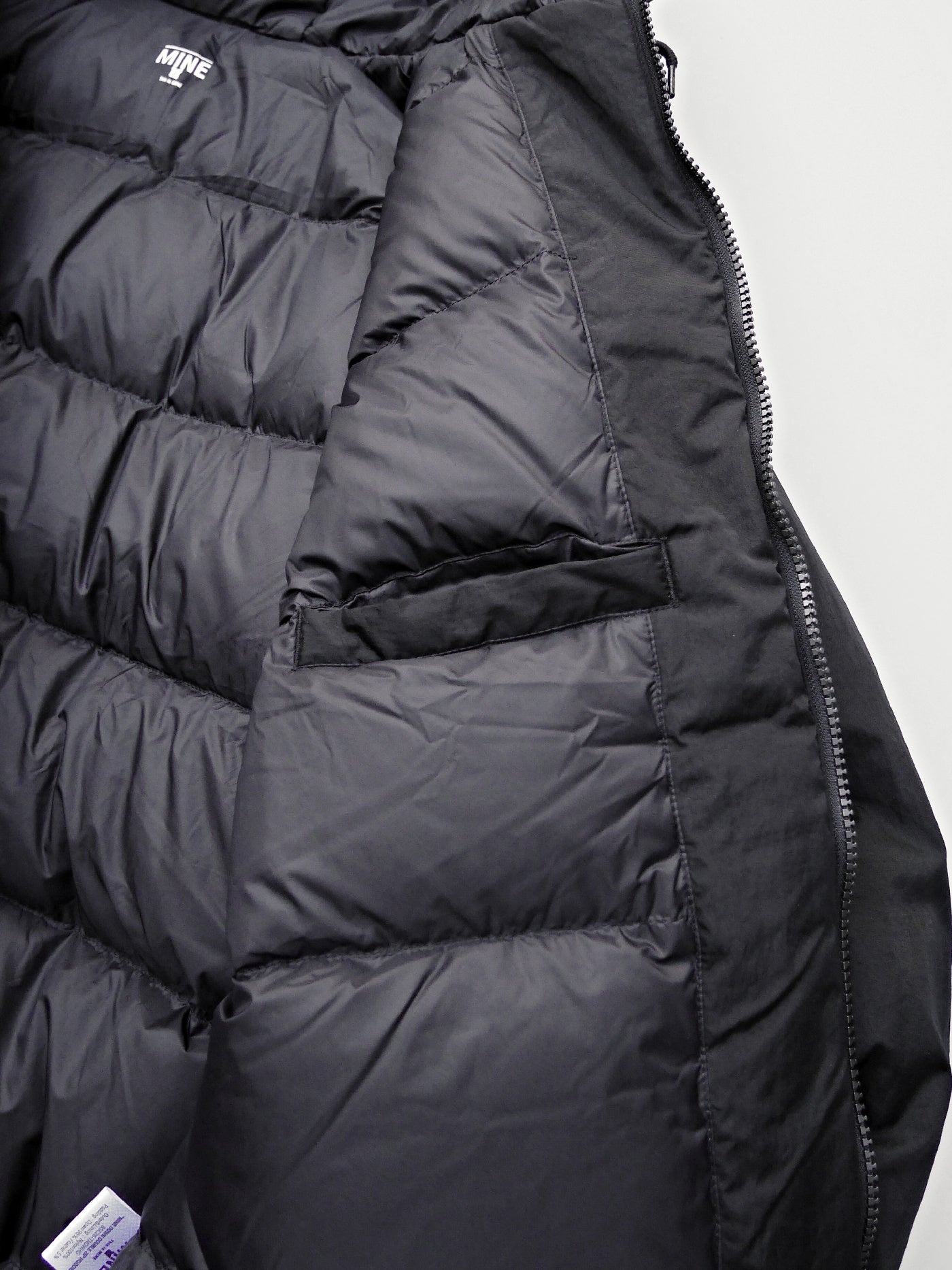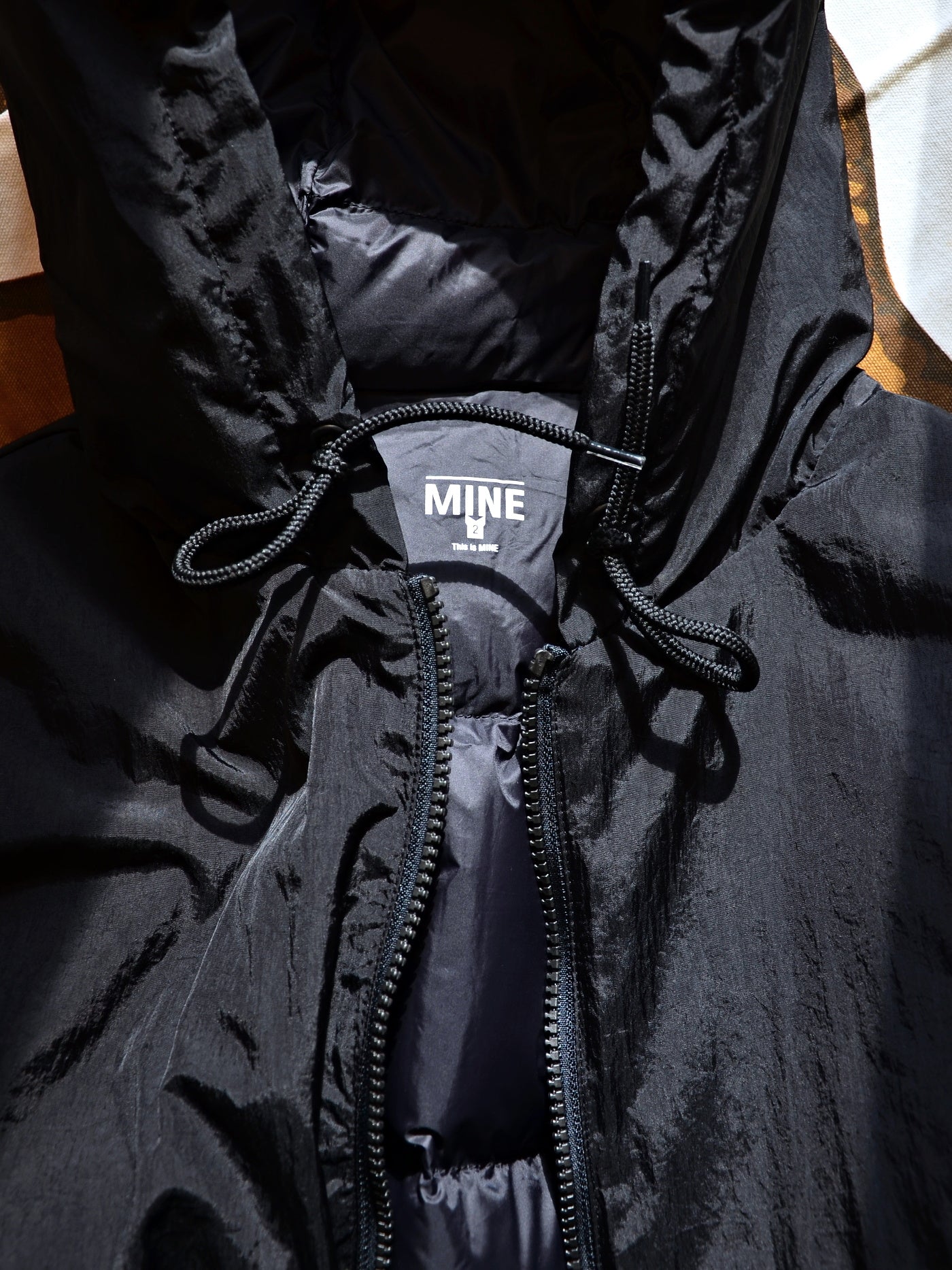 MINE × TAION 800FLP Down Lightweight and simple. Introducing a double-zip hoodie that embodies functional beauty. From MINE, championing “Simplicity perfected,” comes a double-zip hoodie featuring TAION's high-quality 800 fill power down. Lightweight yet highly insulating, it's a versatile piece for everything from daily wear to outdoor adventures. Two front pockets and a convenient inner pocket are strategically placed. The hood features embroidered brand logos, adding a subtle yet impactful detail to the minimalist design. Drawstrings at the hem and hood, along with Velcro at the cuffs, allow for easy adjustment of the silhouette and fit. This piece embodies MINE's signature “practical beauty,” simply condensing lightness, functionality, and design into one item.