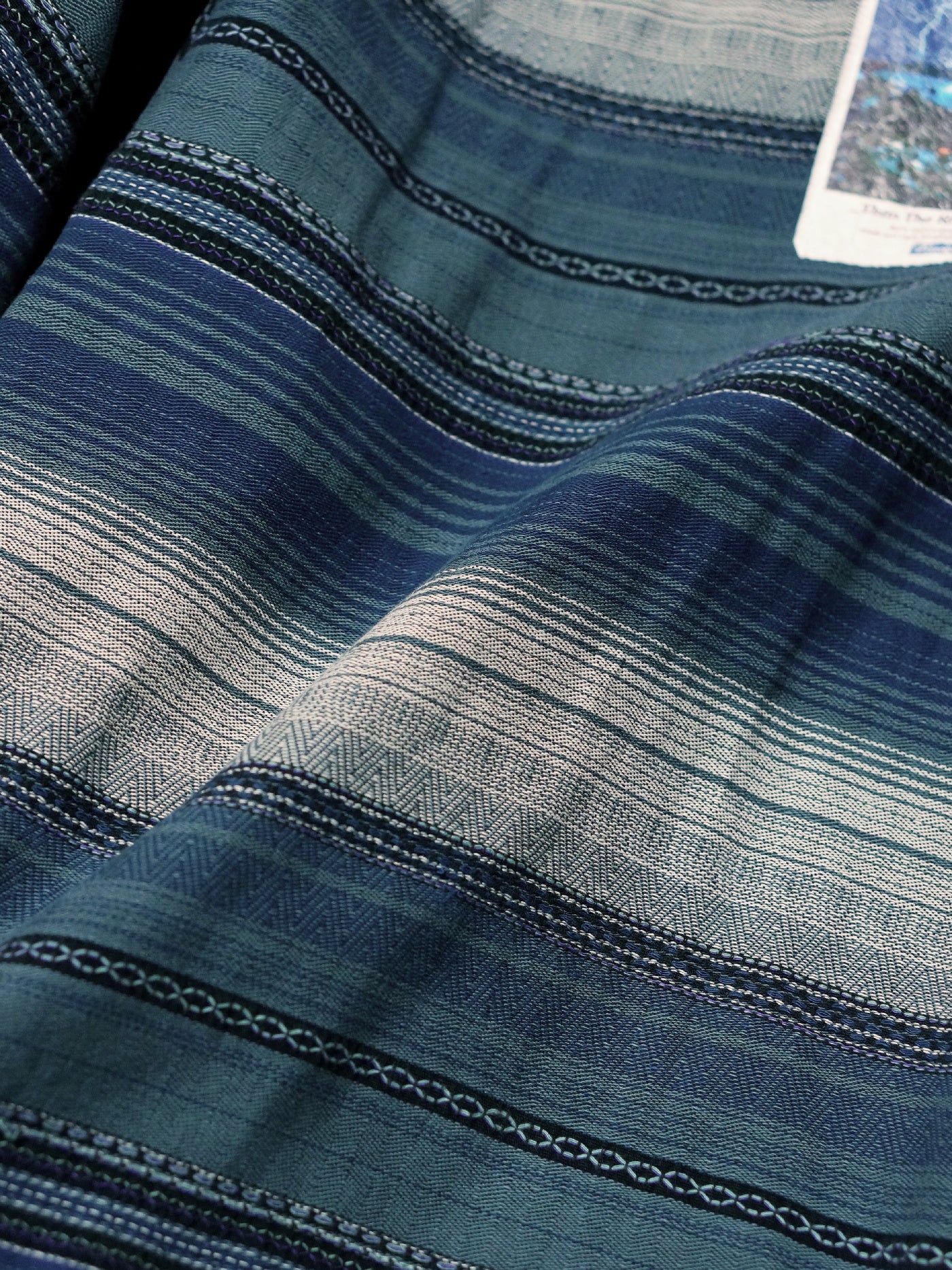 表地にデニム、襟にコーデュロイ、裏地にメキシカンジャガード生地を使用。