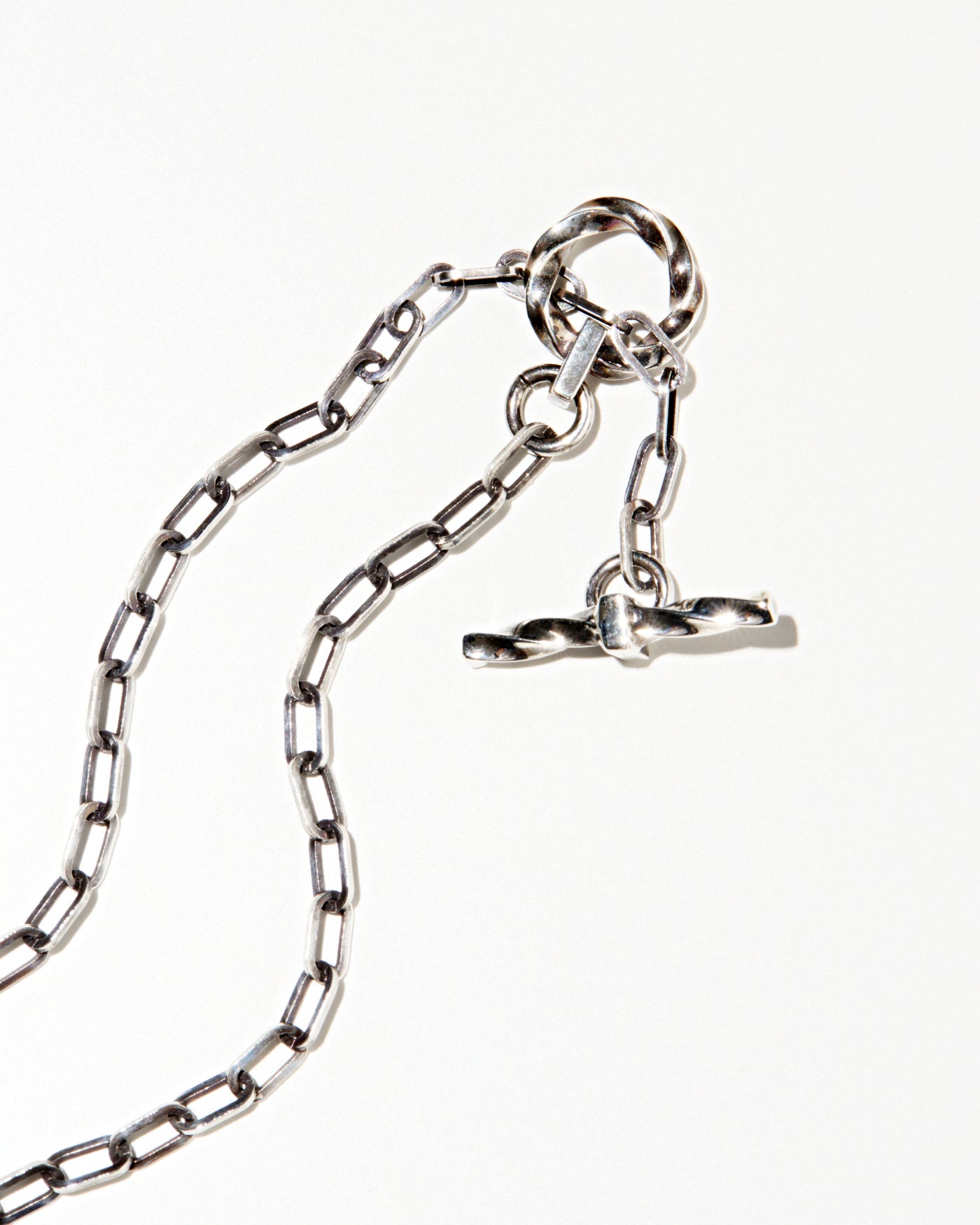 エンドパーツはブランドオリジナルのツイストTバー&リング。