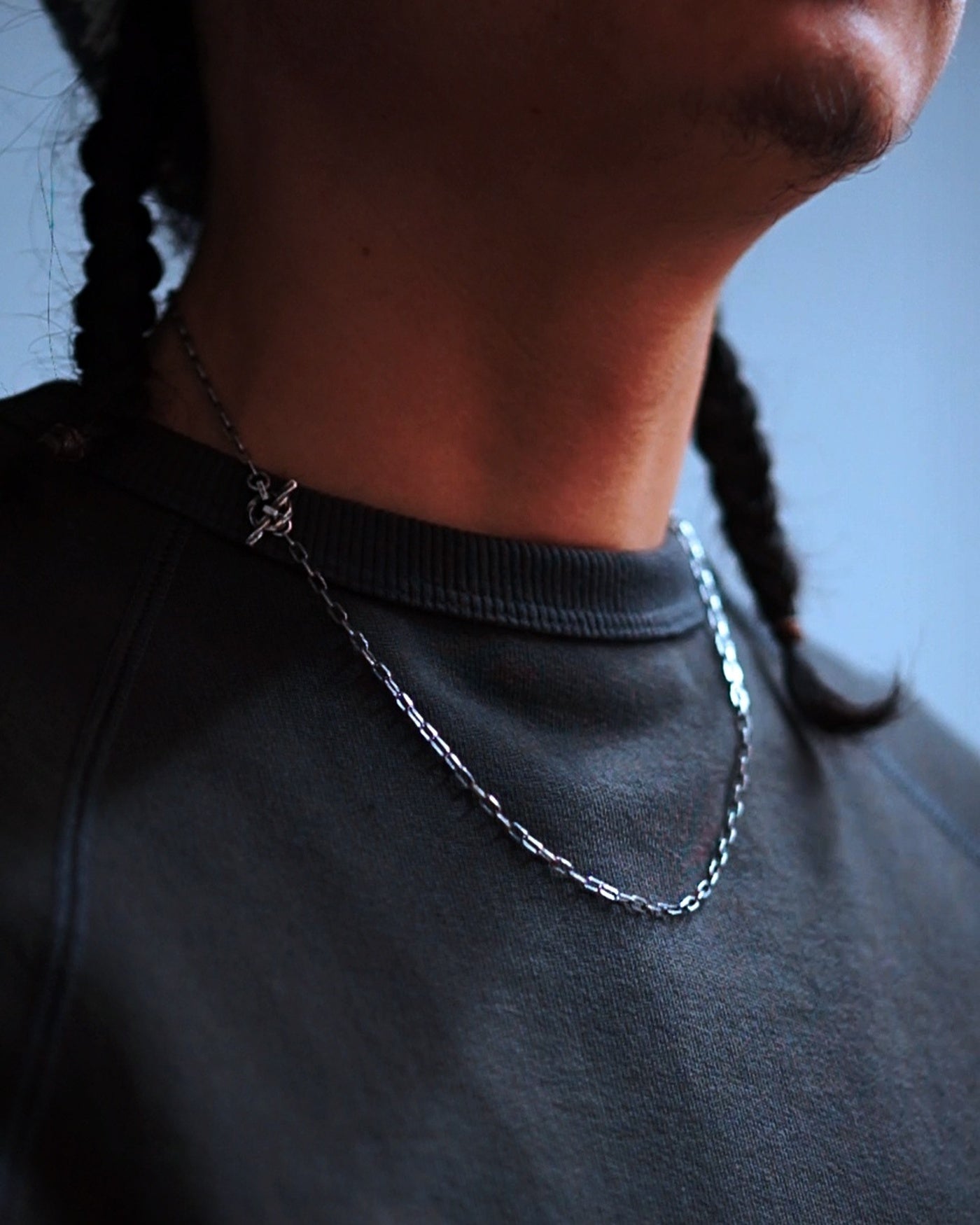 「MONTE CARLO」ネックレスシリーズの後継型でチェーンは1コマ約5mm幅 (縦0.5mm) と大振りな角線ロー付けタイプ。