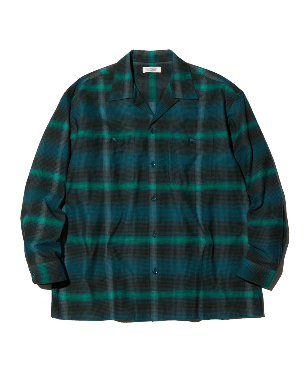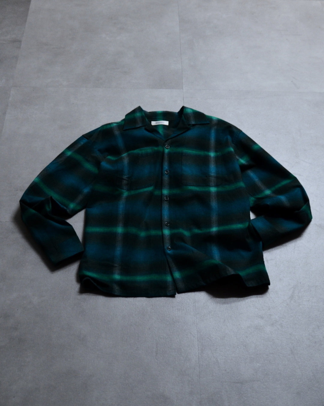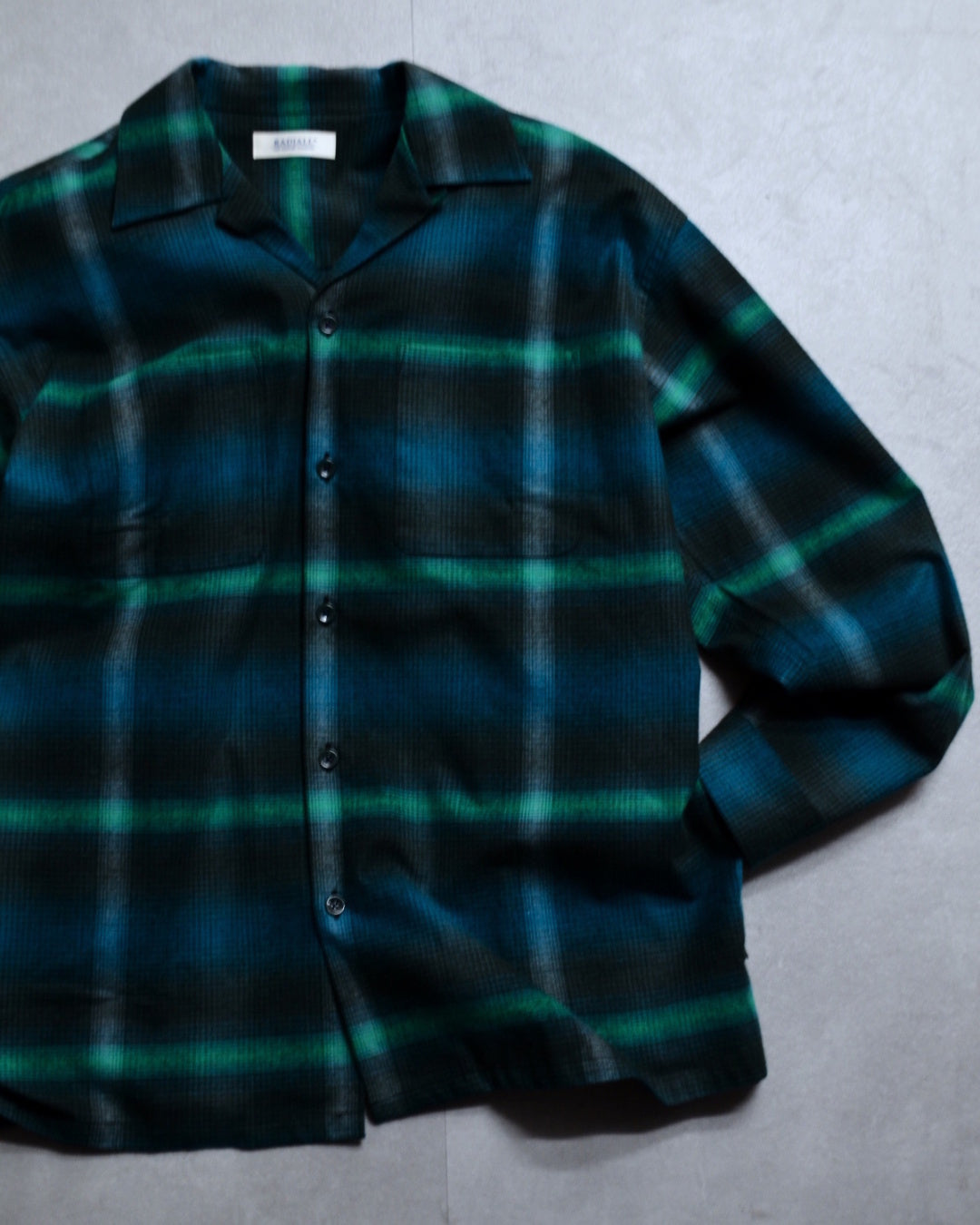 Detail : メキシカンラグを意識した美しい織り柄が特徴のコットンネルオンブレチェックシャツ、BOULEVARD - OPEN COLLARED SHIRT L/S。