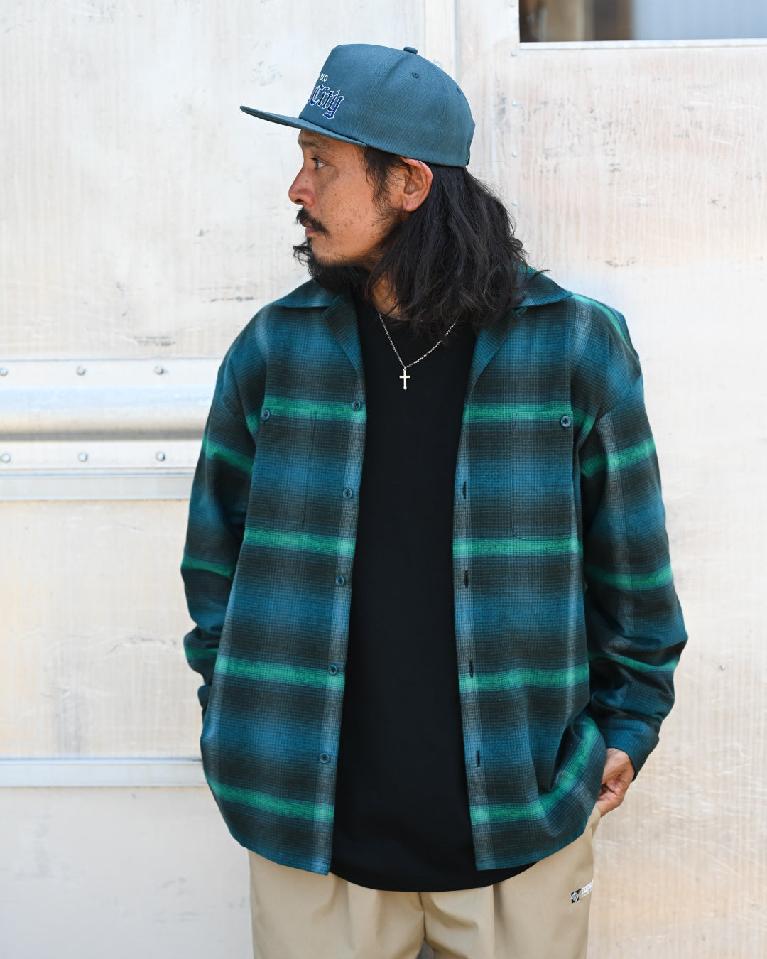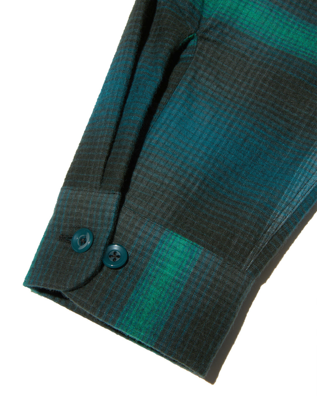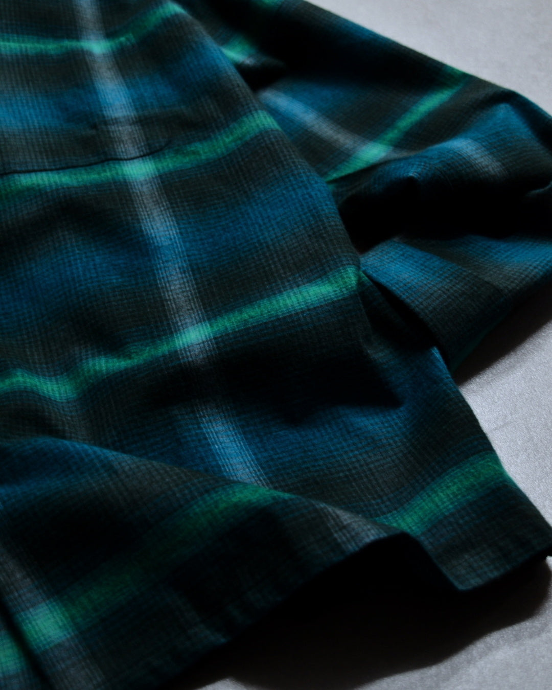 Detail : メキシカンラグを意識した美しい織り柄が特徴のコットンネルオンブレチェックシャツ、BOULEVARD - OPEN COLLARED SHIRT L/S。