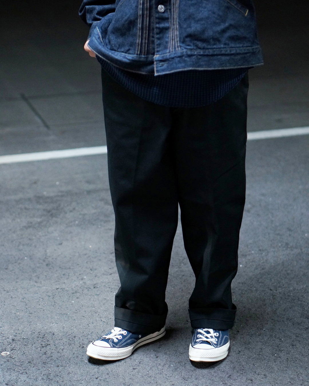 生地の厚みと堅牢性、色にこだわったT/Cツイルを使用したワークパンツ。