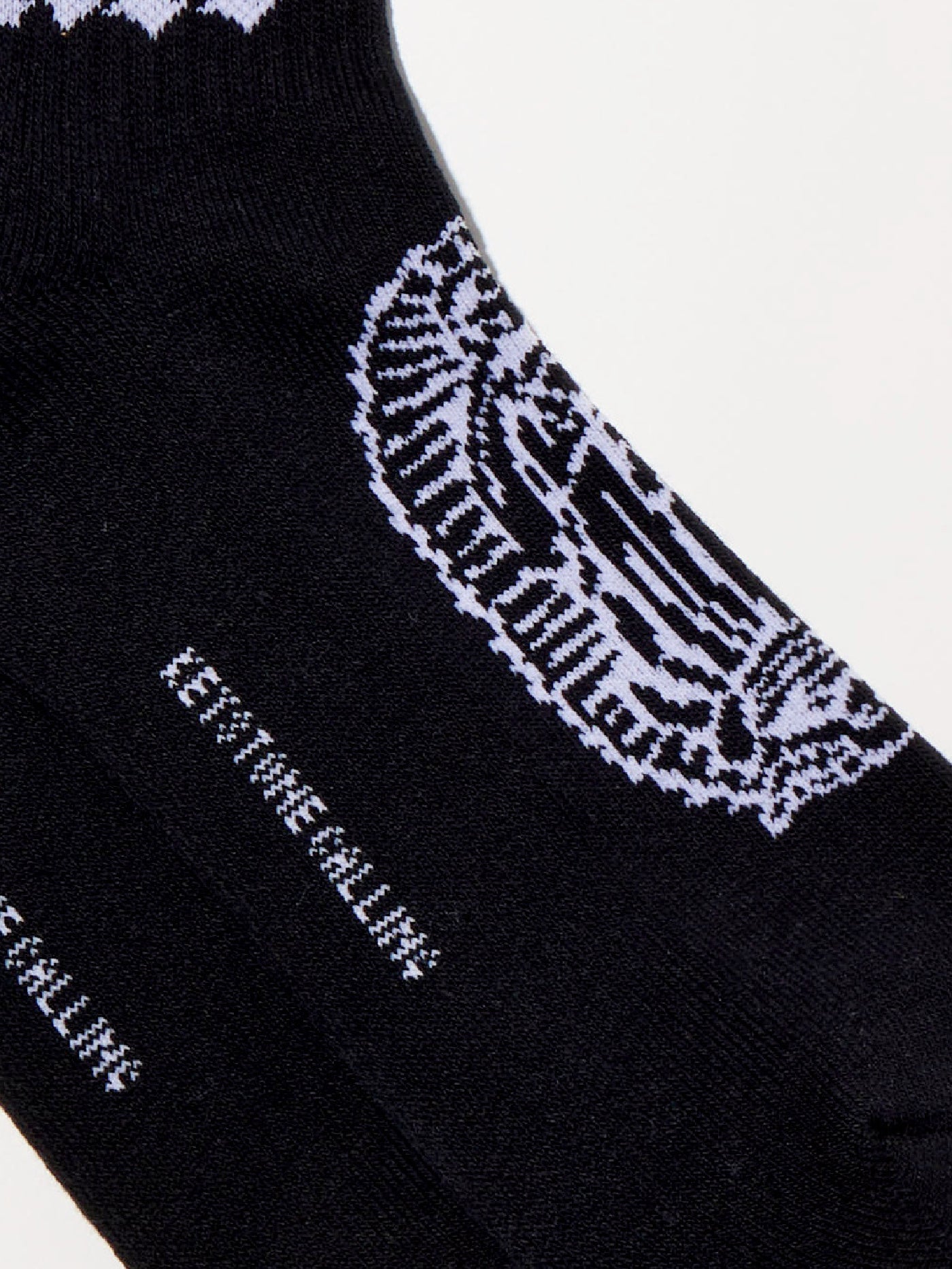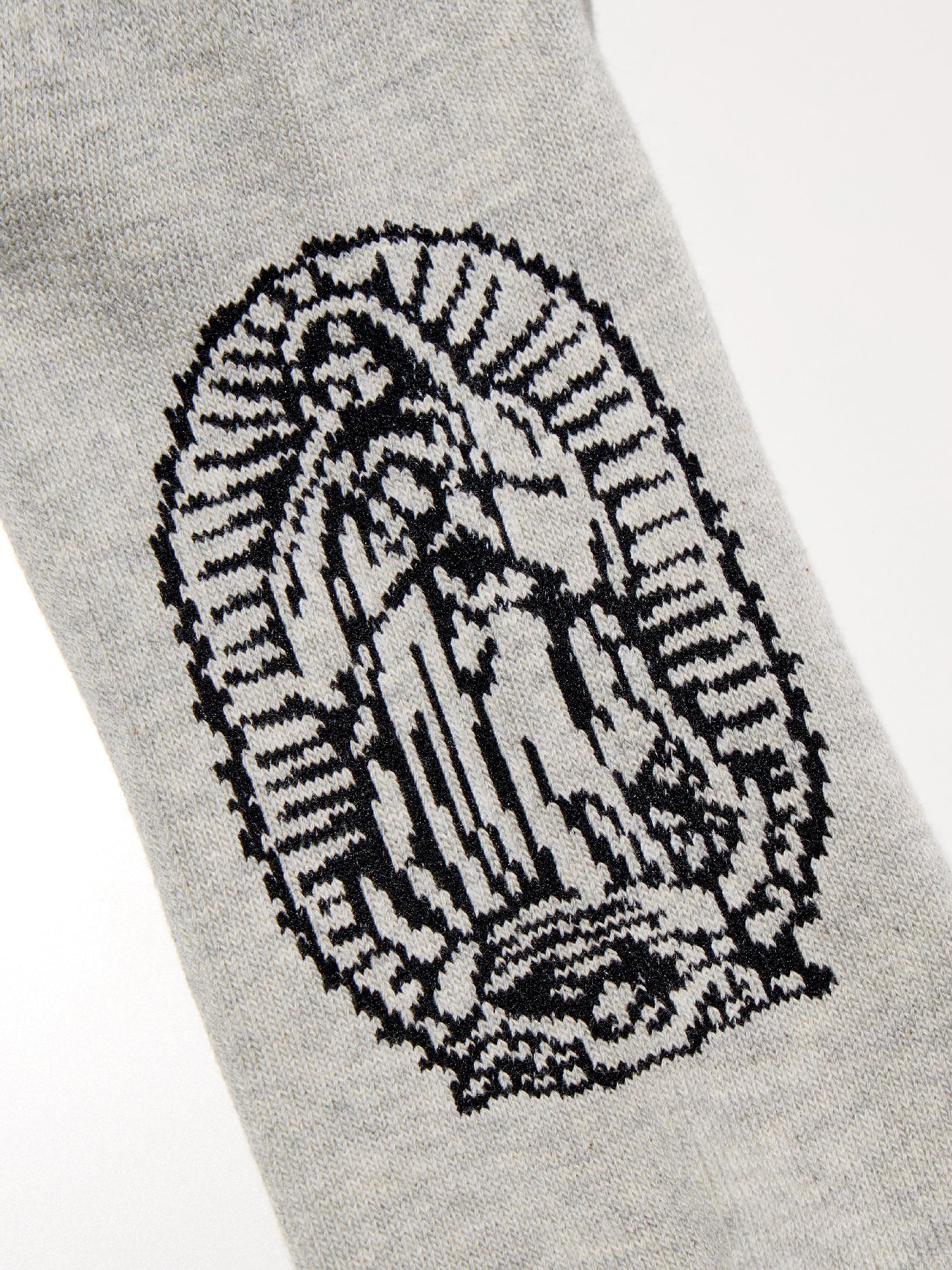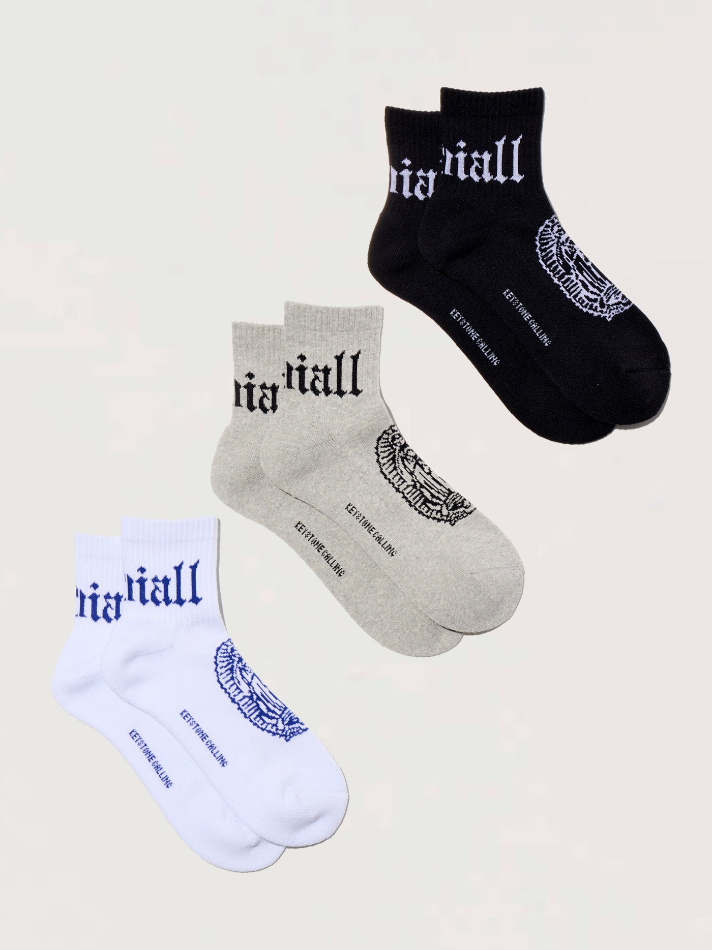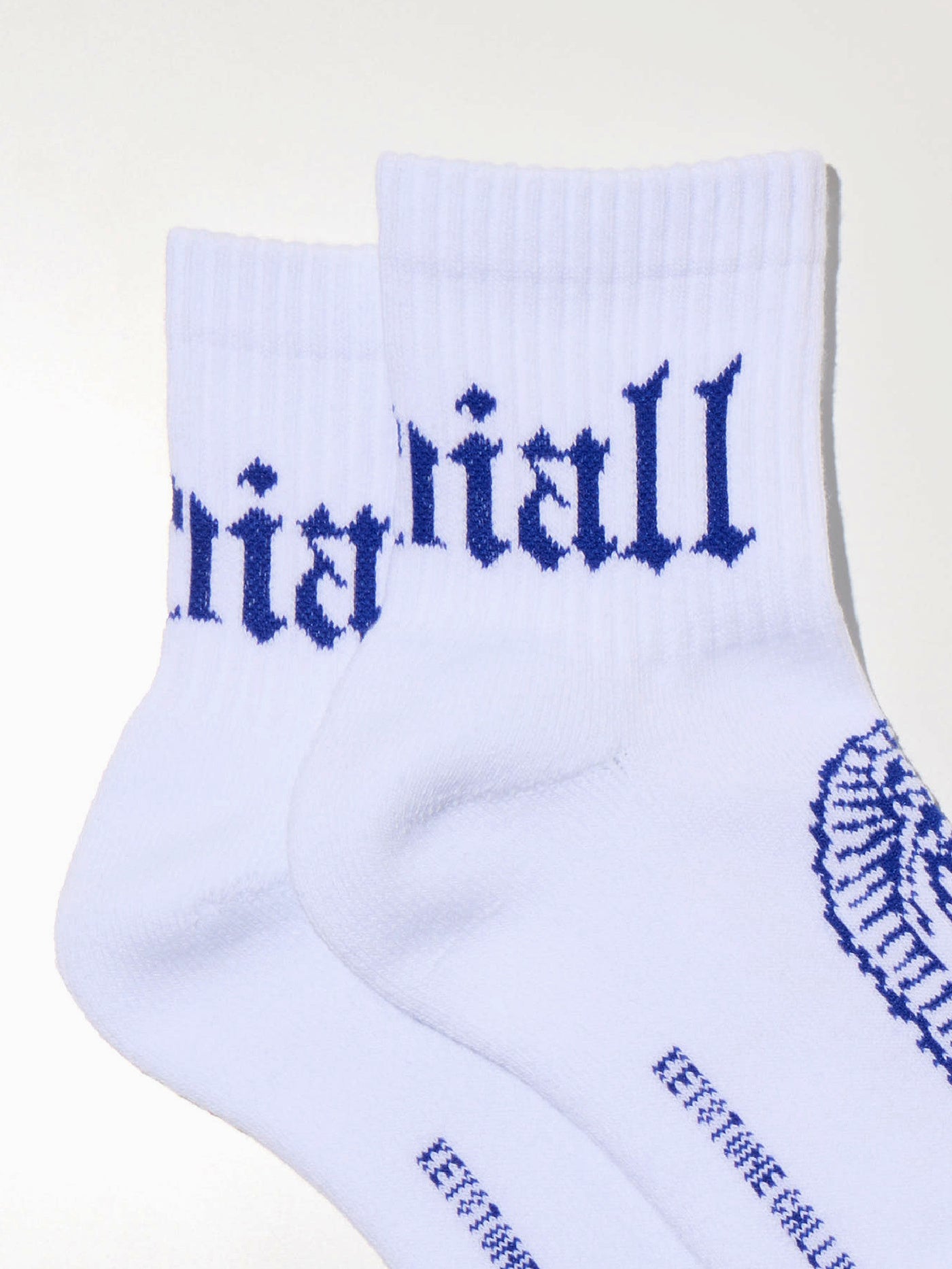 ジャガードでシャフト部分にブラックレターフォントの「RADIALL」、甲に「レコードマリア」、履き口裏に「WWW.RADIALL.NET」、足裏には「NO STASH INSIDE」のレター。