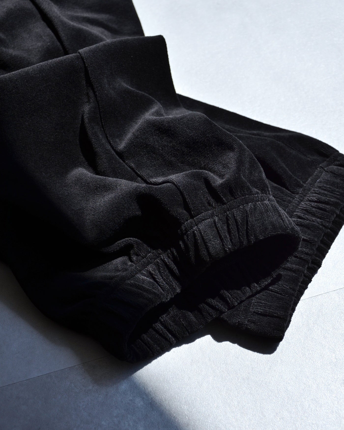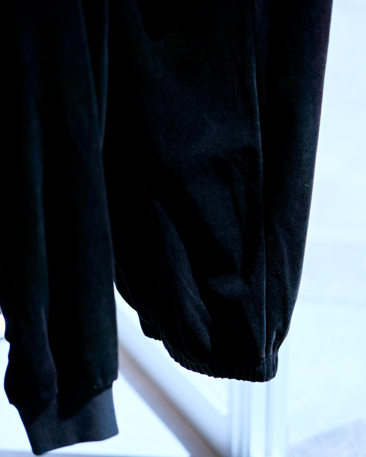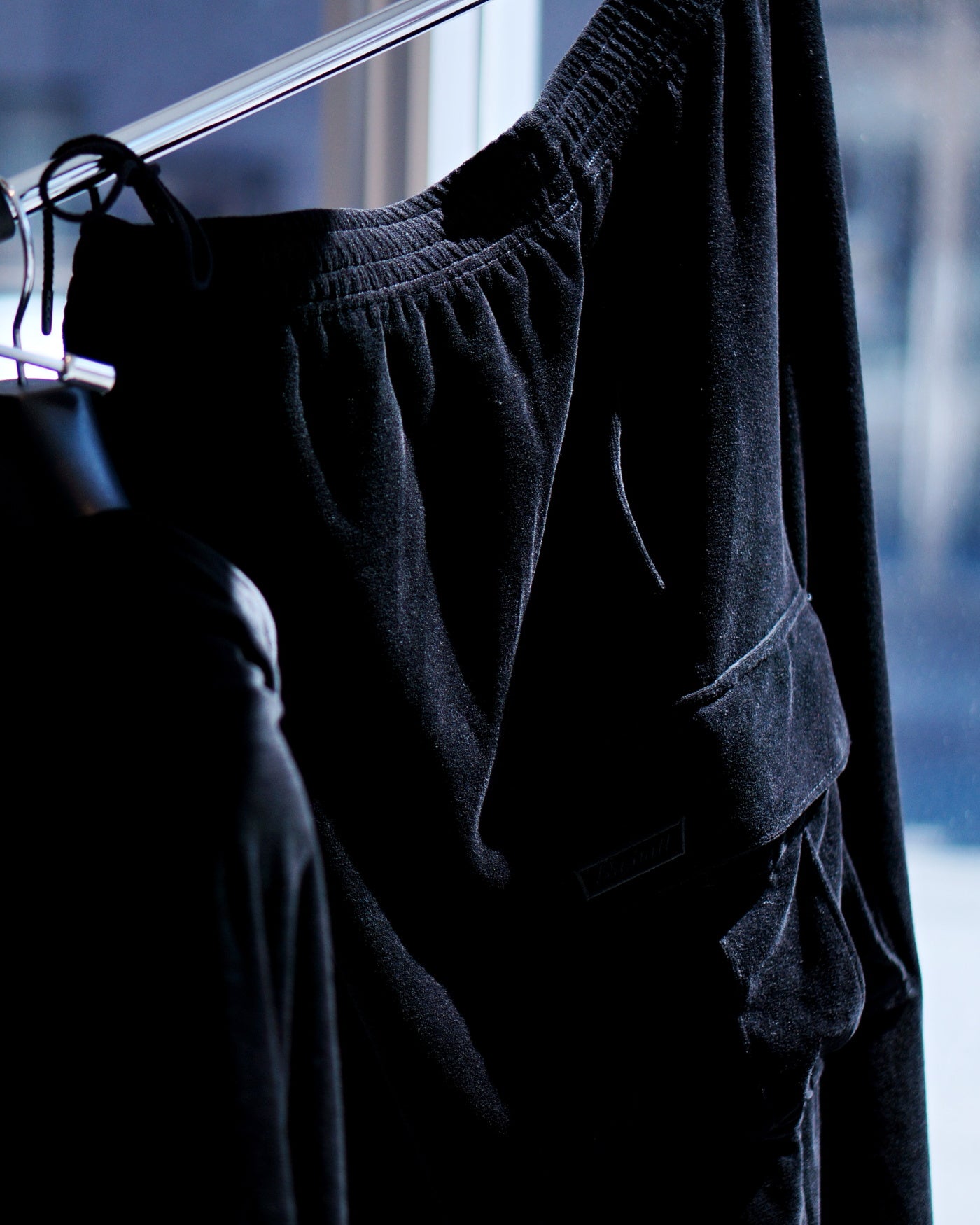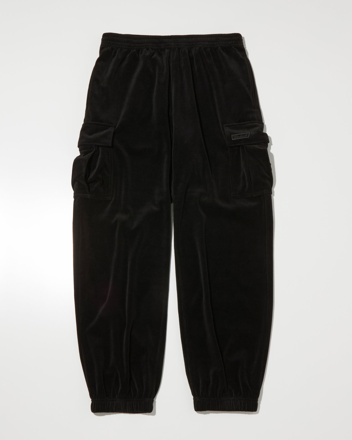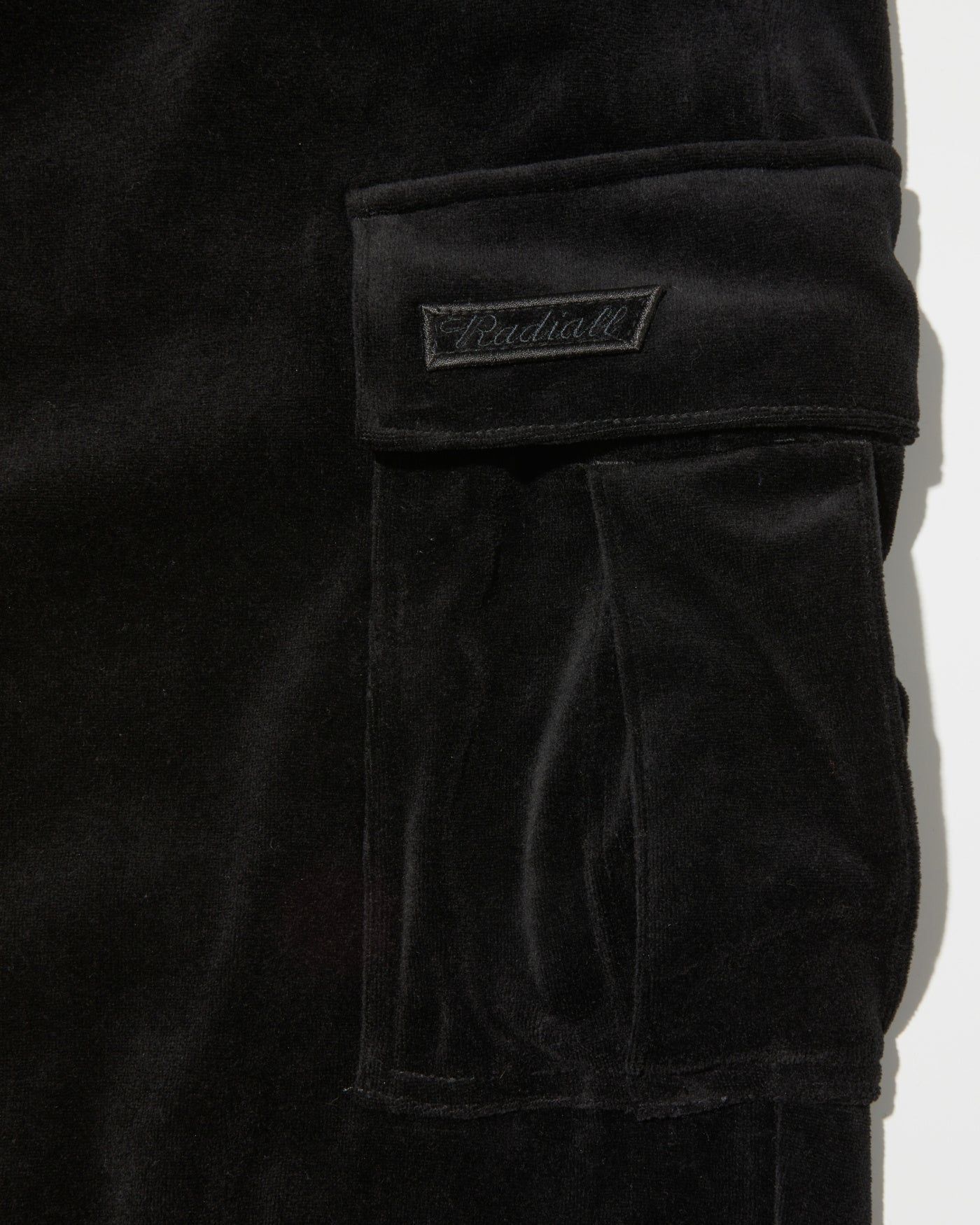 detail : 高級感とストリートな雰囲気を兼ね備えるT/Cベロアを採用したイージー仕様のカーゴパンツ、FLAGS - CARGO TRACK PANTS。