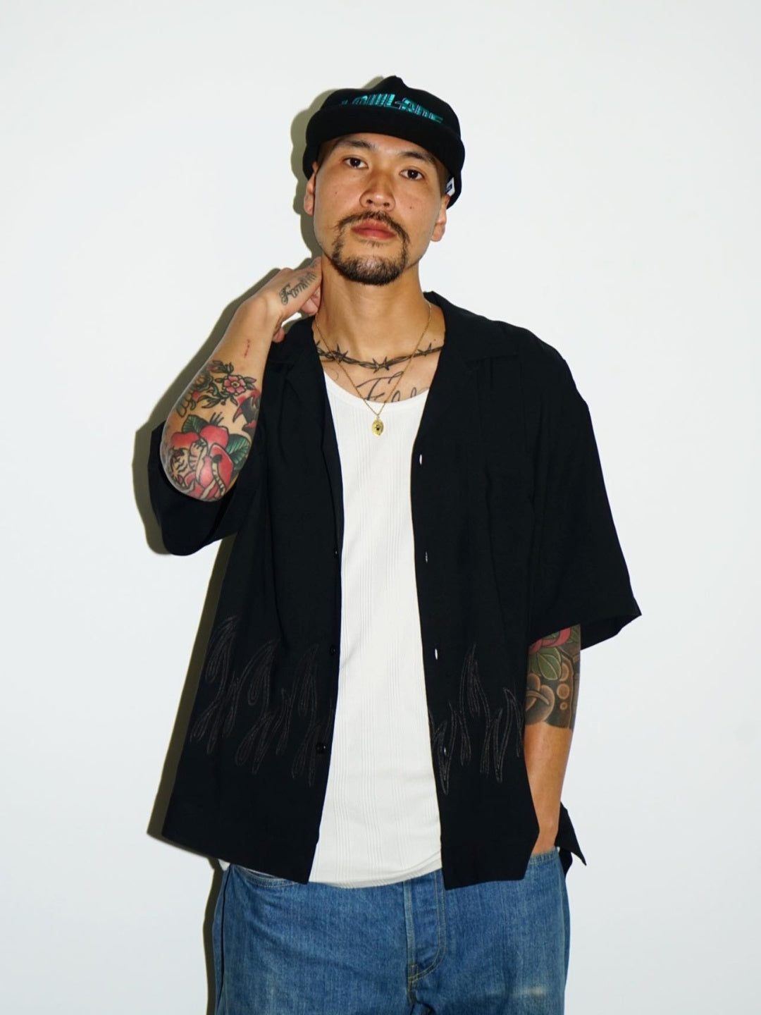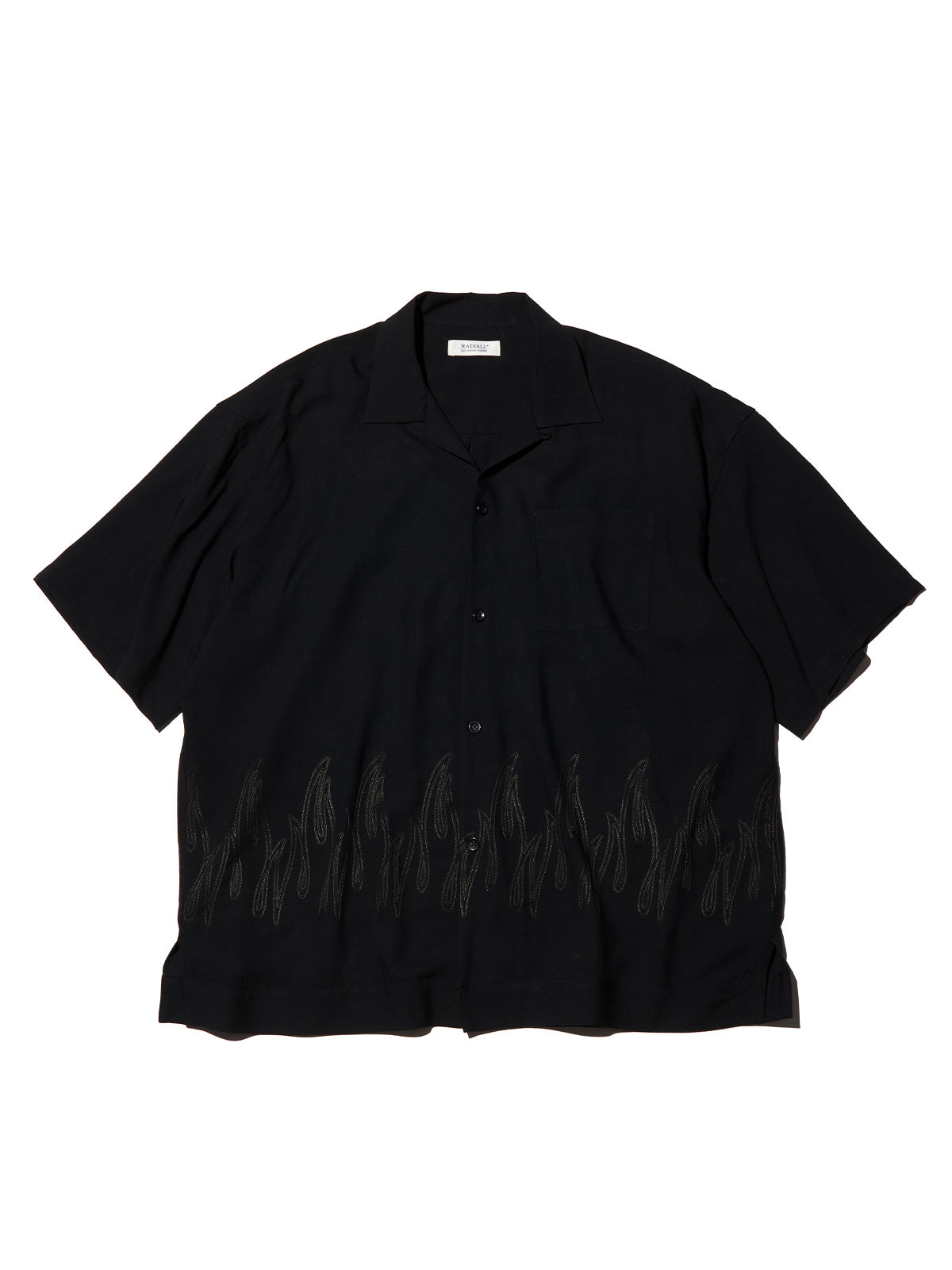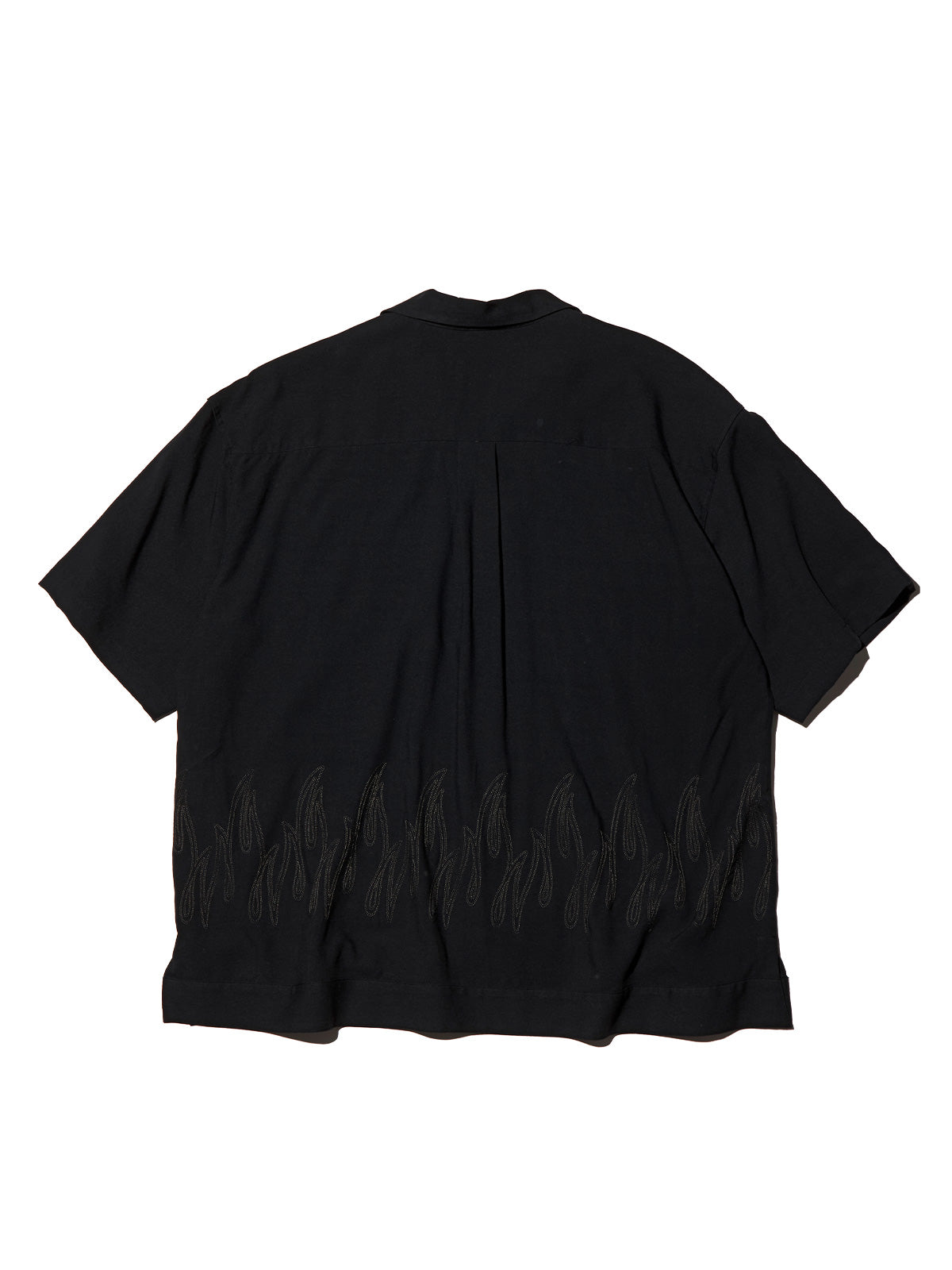 RADIALL | FLAMES OPEN COLLARED SHIRT S/S - Black