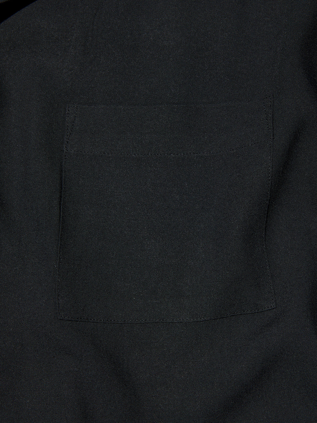 Detail : 20スフレーヨンを平織りで織り上げたレーヨン生地を使用したオープンカラーシャツ。