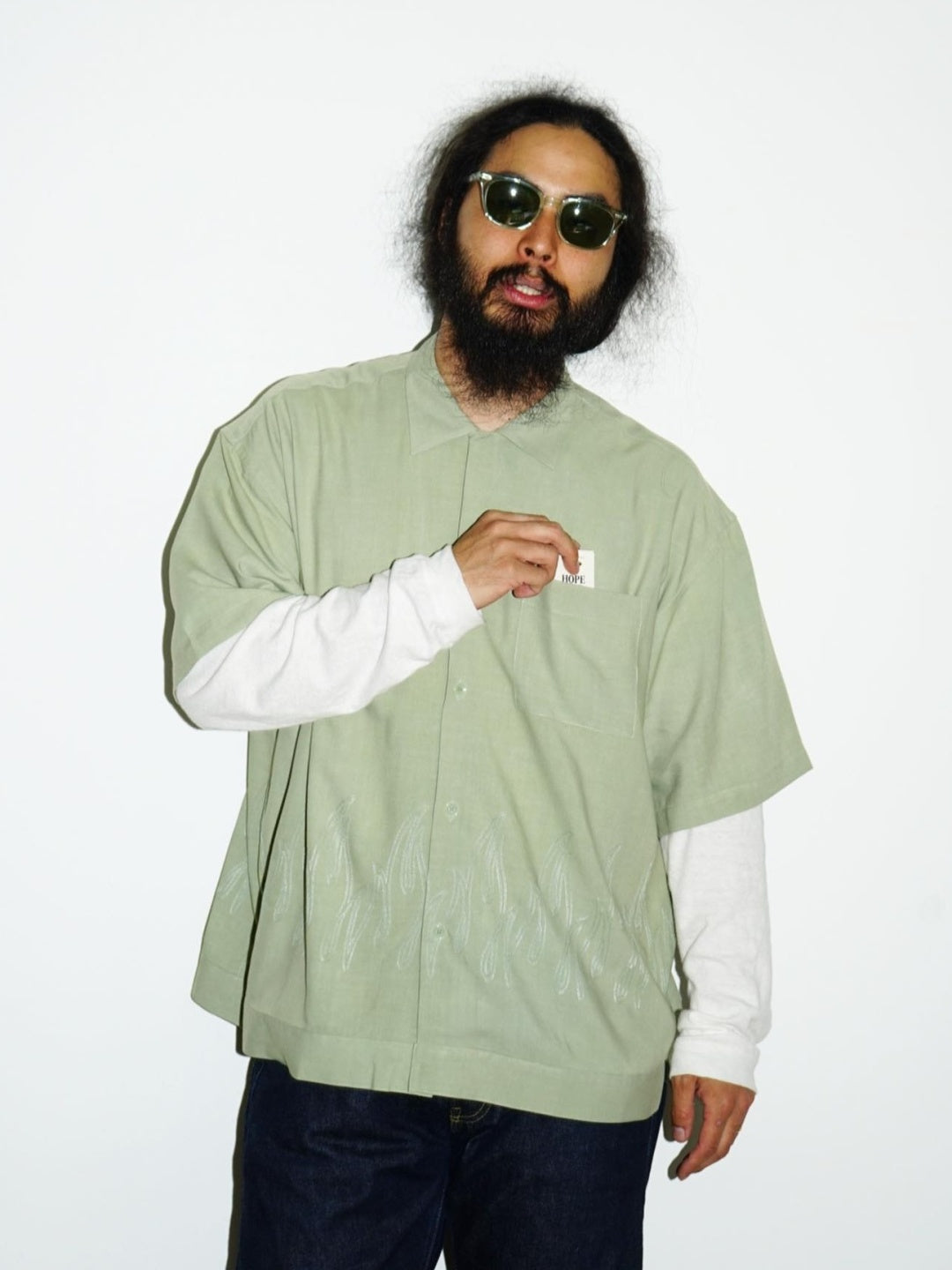 RADIALL | FLAMES OPEN COLLARED SHIRT S/S - Leaf Green