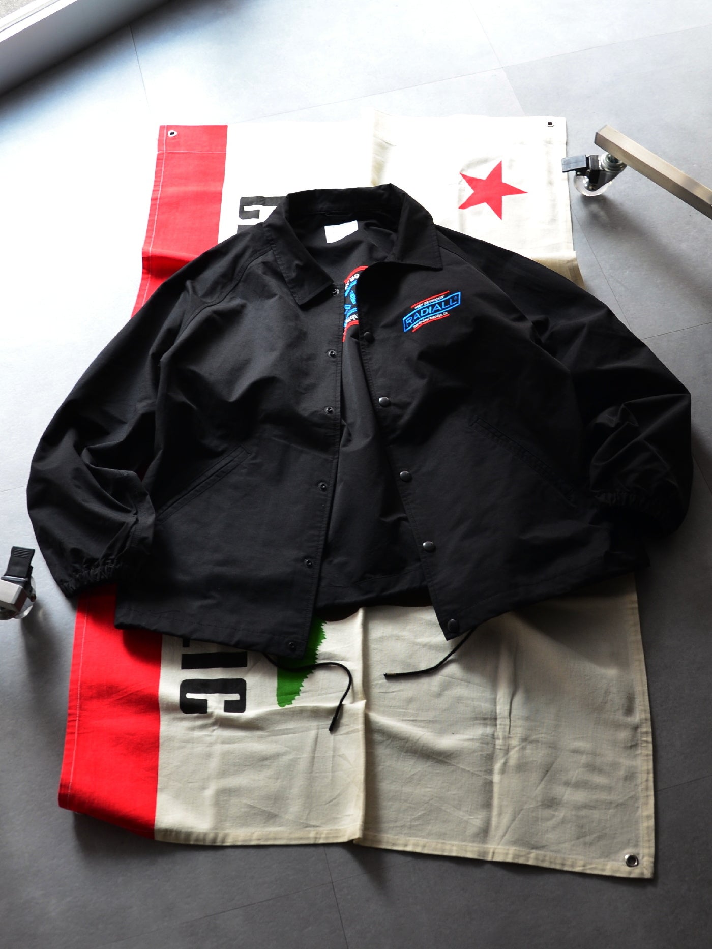 how was it : 身長173cm、体重68kgでMサイズを着用。普段 RADIALL はほとんどのアイテムでMサイズを着ますが、こちらのジャケットもいつも通りMサイズが大きすぎず窮屈でもなく、動きやすくシルエットもよく丁度よいサイズでした。