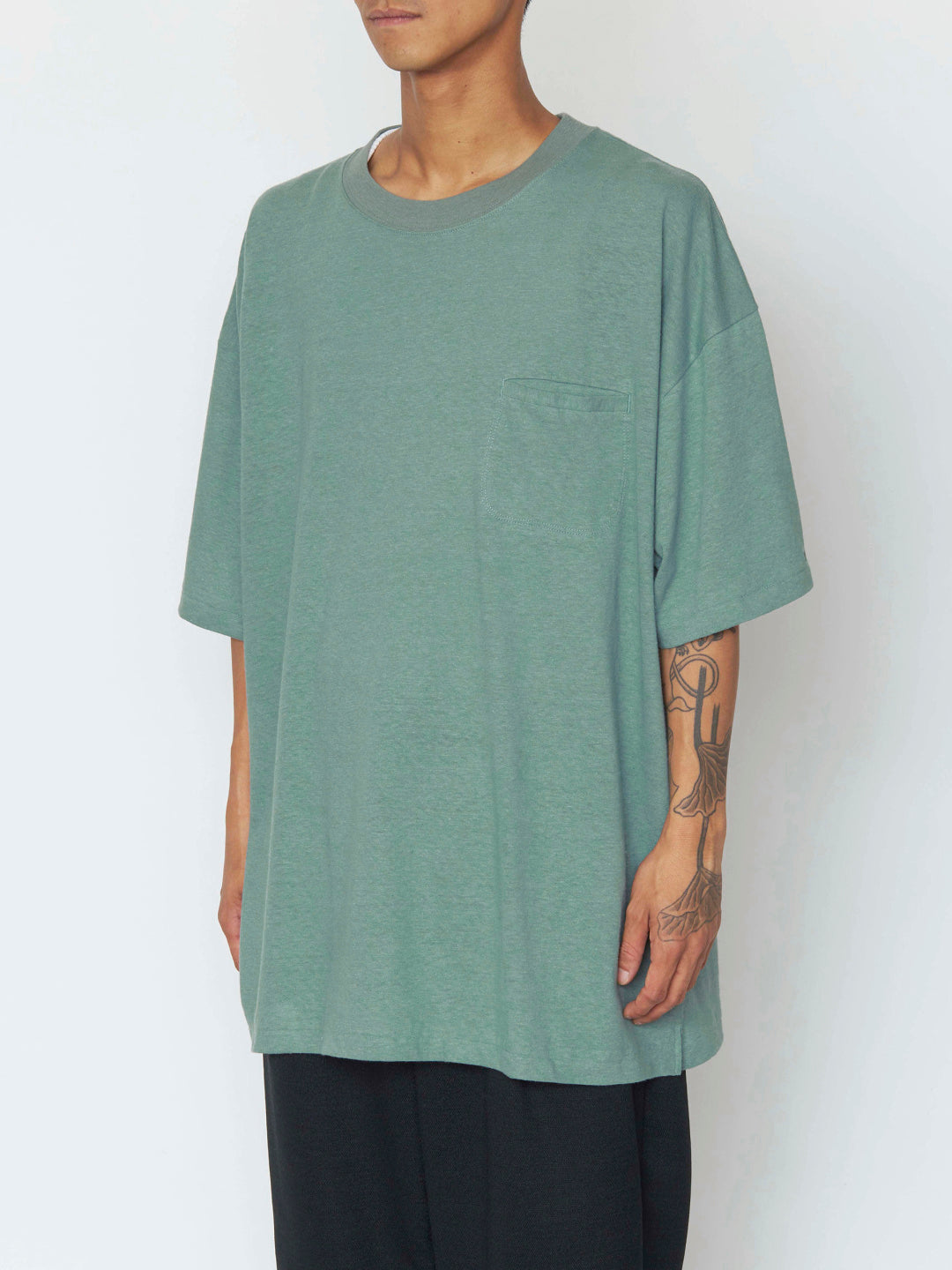 吸水性、発散効果に優れたベルギー産のリネンとコットンを柔らかく編み上げた天竺素材のショートスリーブTシャツ。