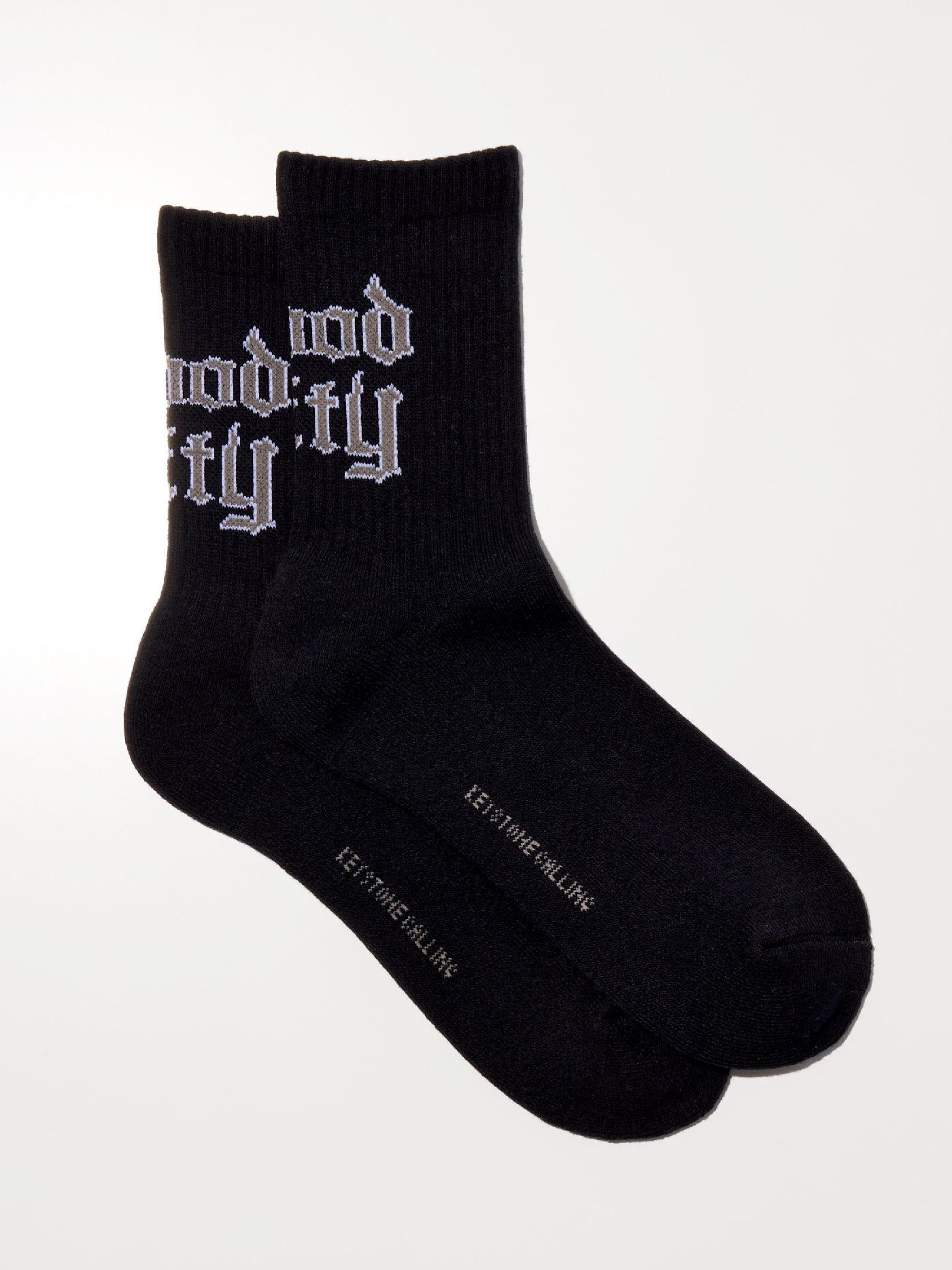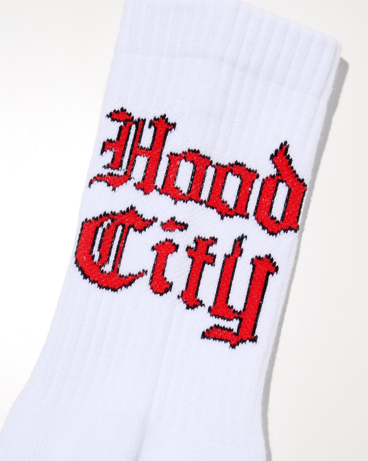 detail : HOOD CITY柄のミッド丈チューブソックス、HOOD CITY - 1PAC SOX MID / DRALON。