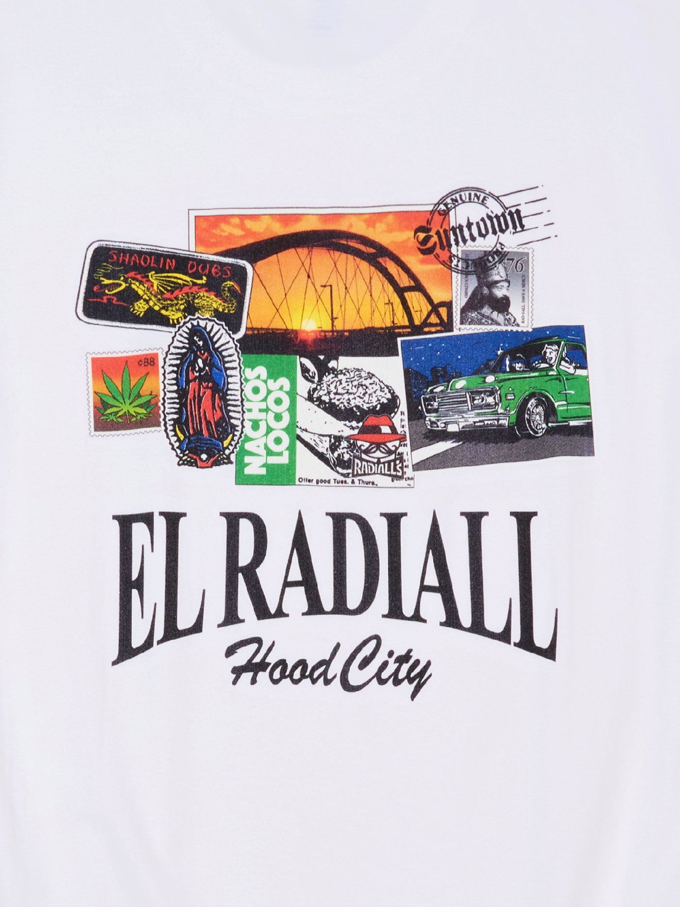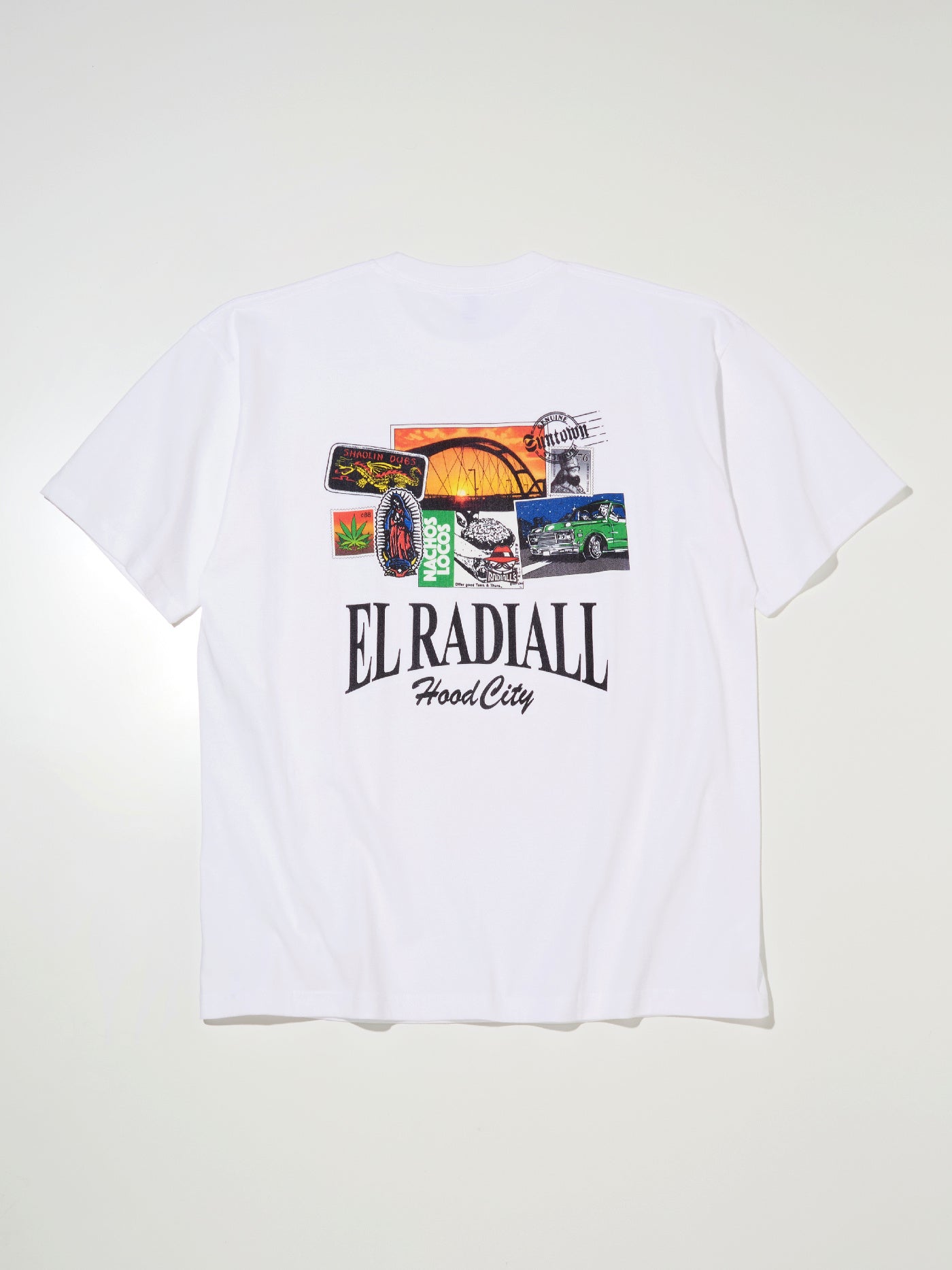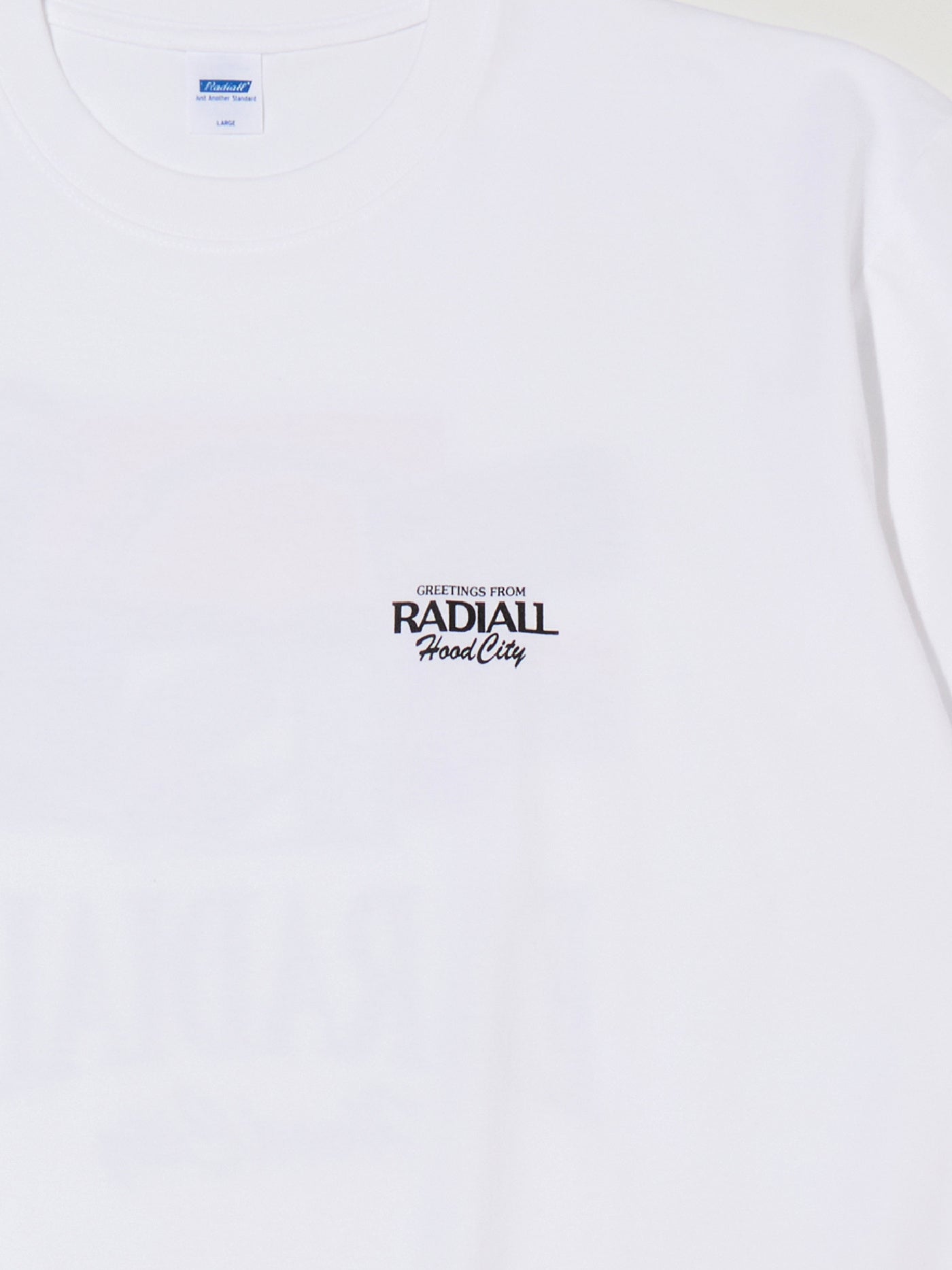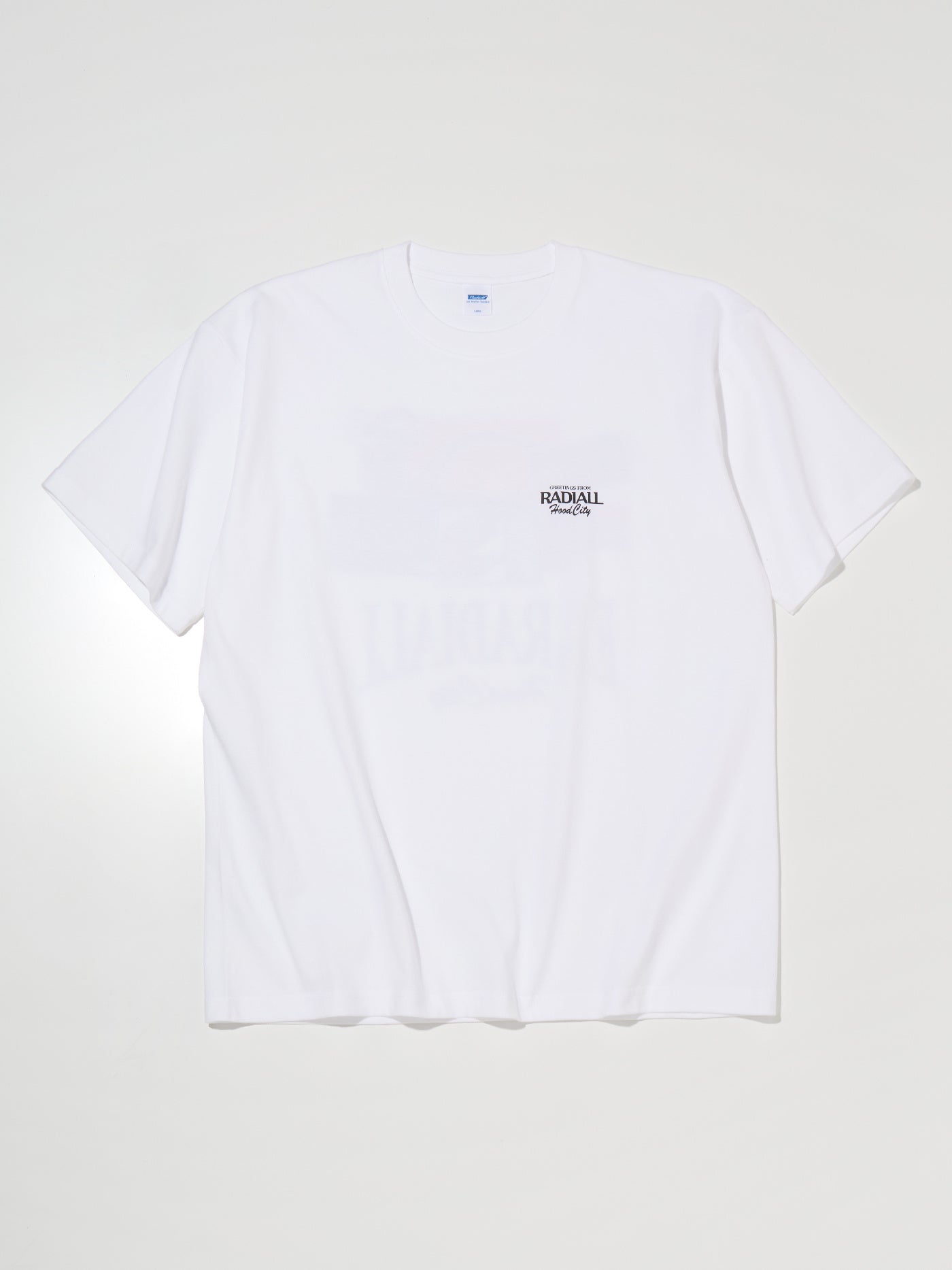 フロントに薄引きラバープリントのブランドロゴ、バックにはRADIALLのスーベニアTを意識したグラフィックをインクジェットプリントで色鮮やかに表現しています。