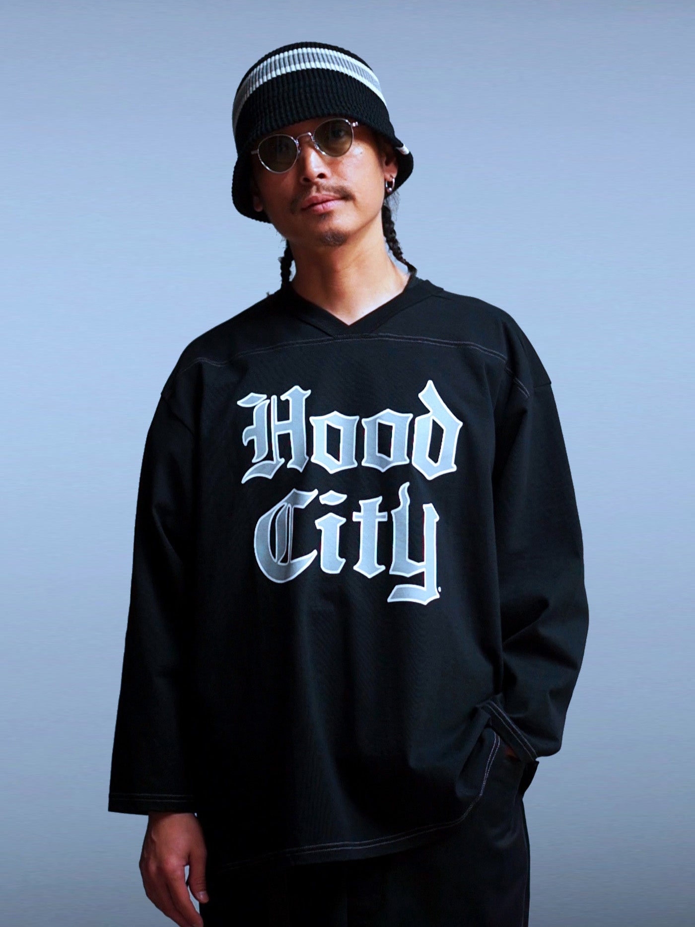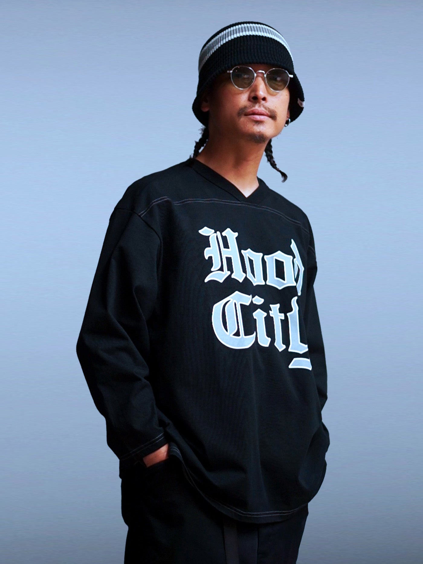 detail : ボックスシルエットのフットボールシャツ、HOOD CITY - FOOTBALL T-SHIRT CROPPED SLEEVE。
