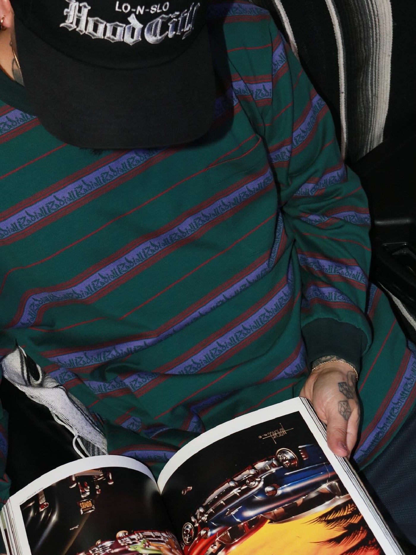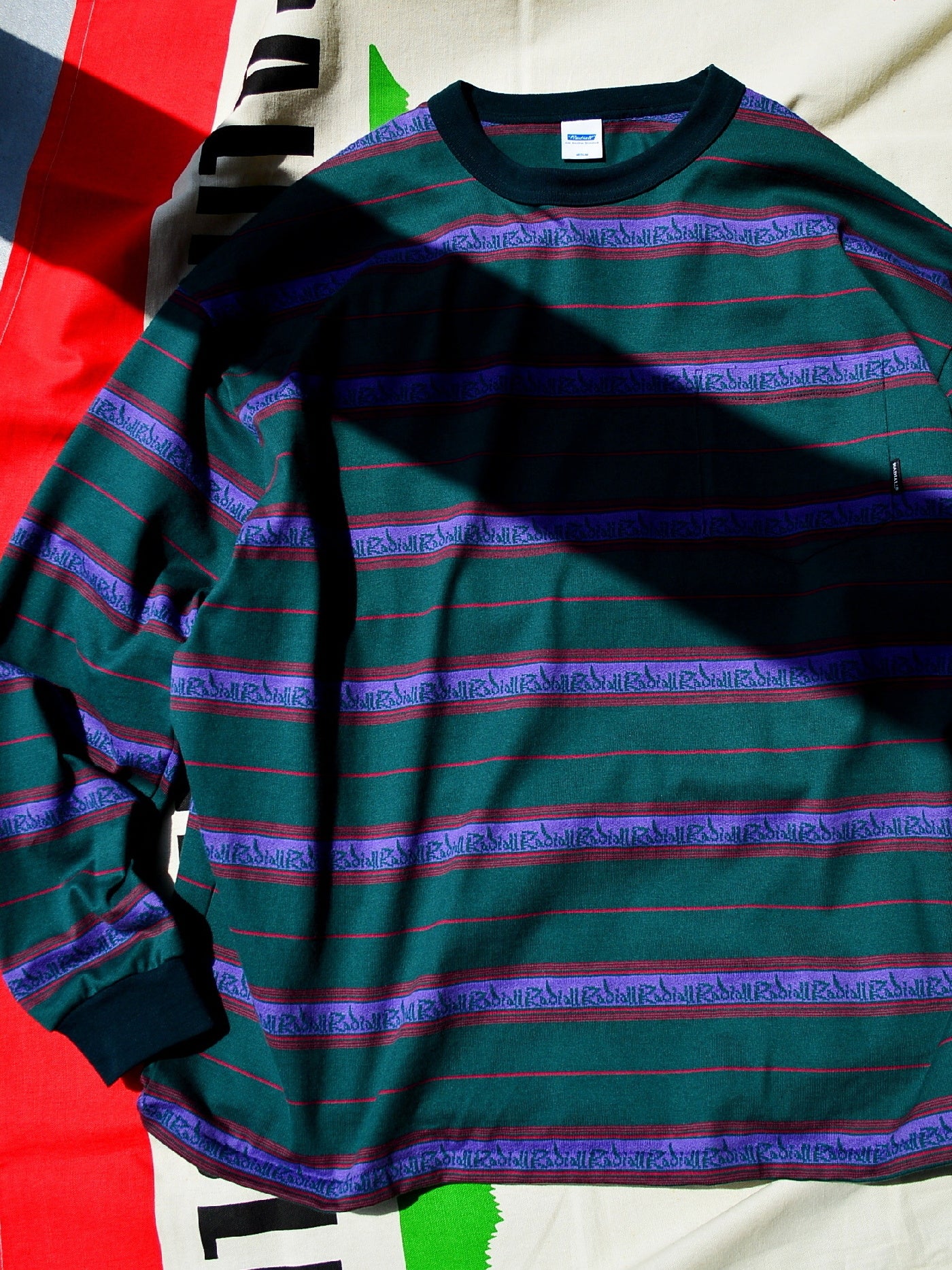 柄はブランドの定番であるメキシカンラグを意識したデザインで、ブランドネームがトライバル柄のように散りばめられています。