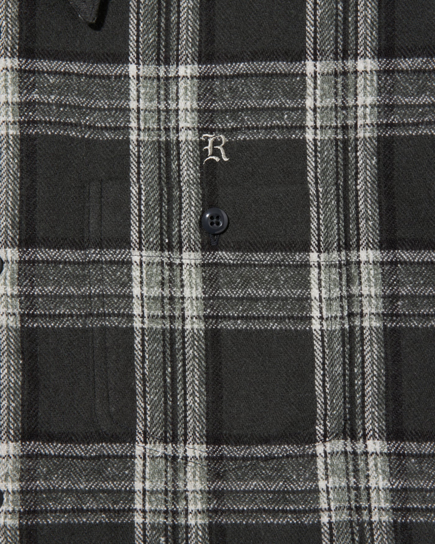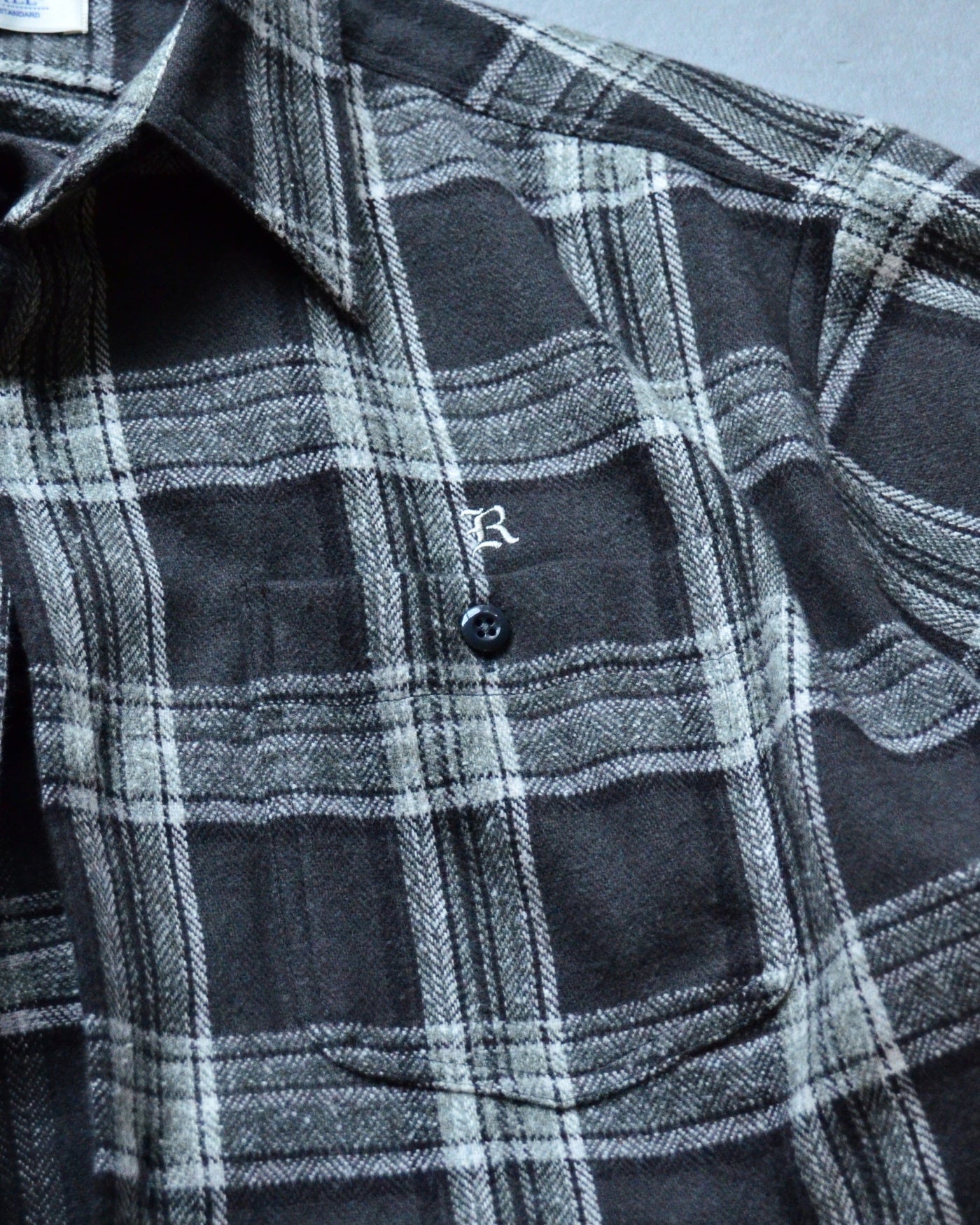 また左胸ポケット上にブランドイニシャルであるRの刺繍、ボタンにはビンテージに倣い尿素ボタンを採用。