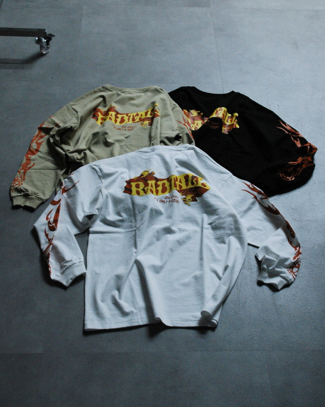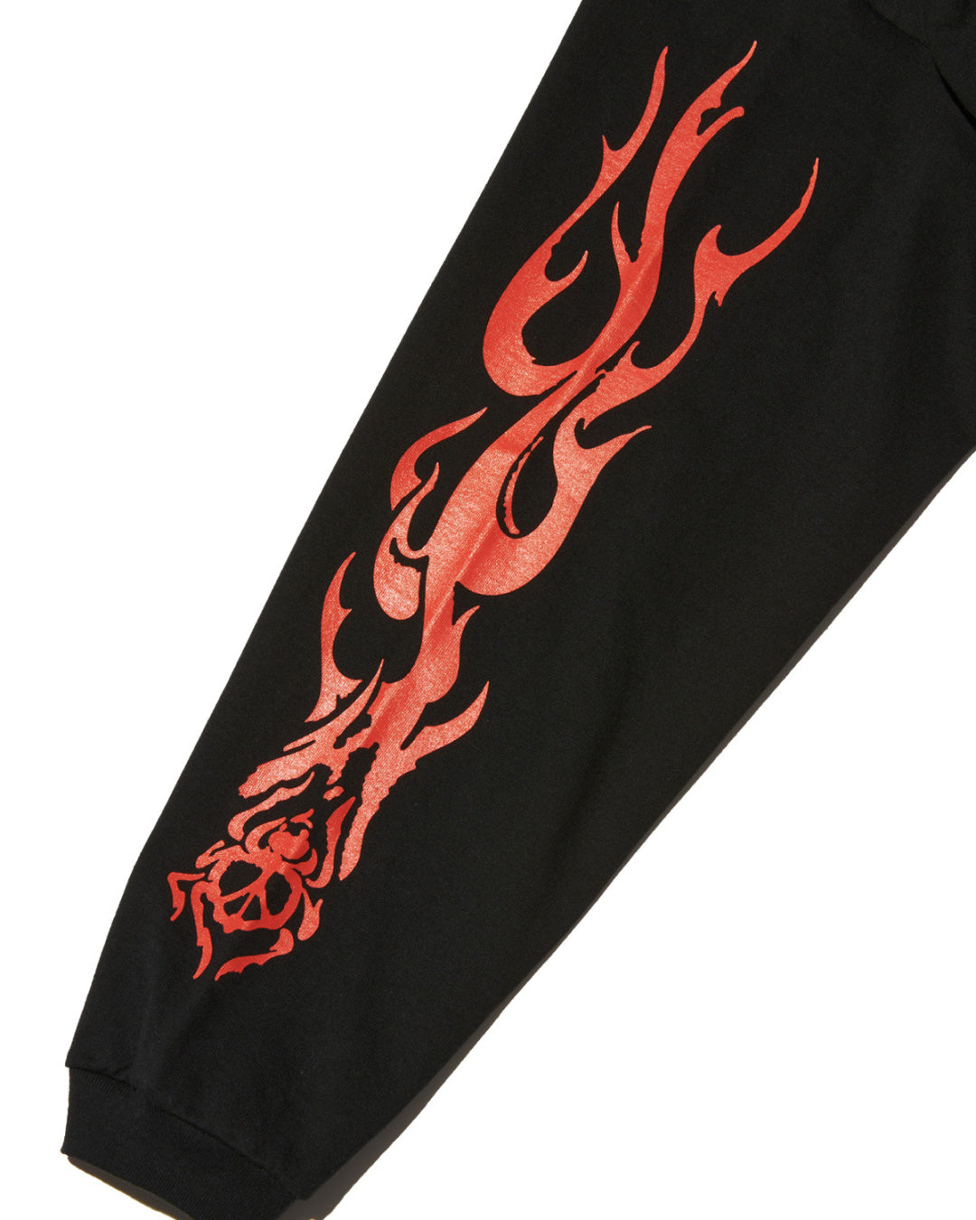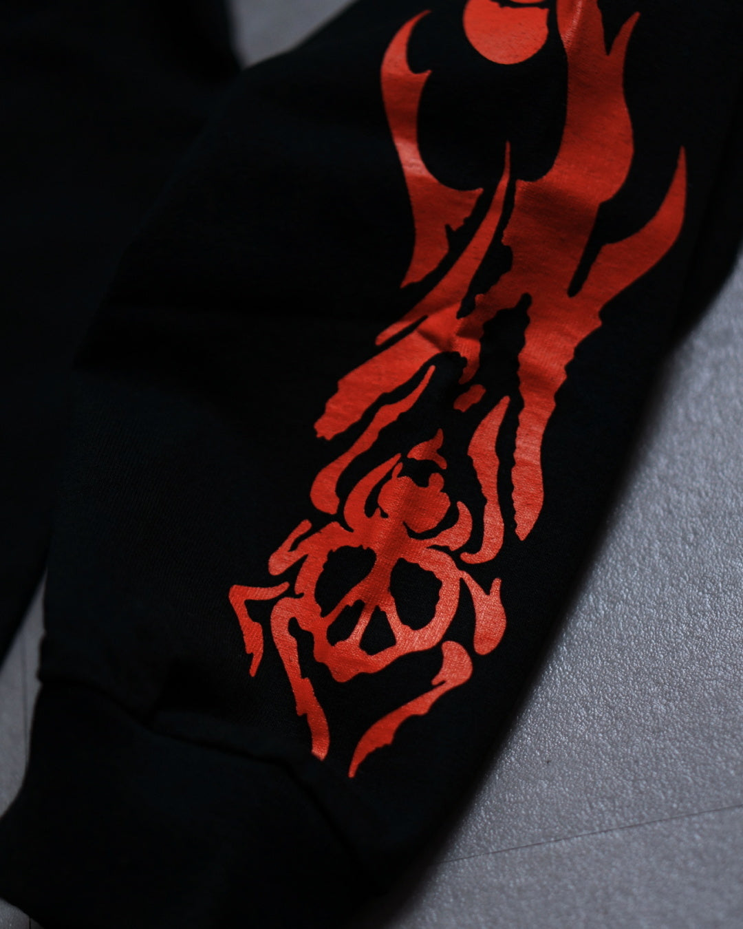 Graphic : 袖は創造と復活のシンボルとしされるスカラベとフレームス、バックはブランドロゴとその周りを∞を描き回り続けるキャラクター。