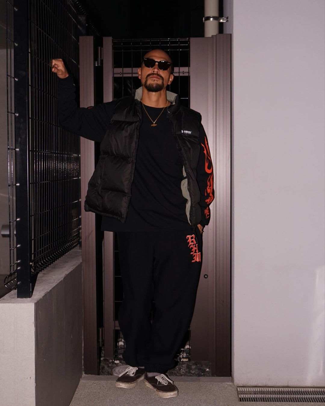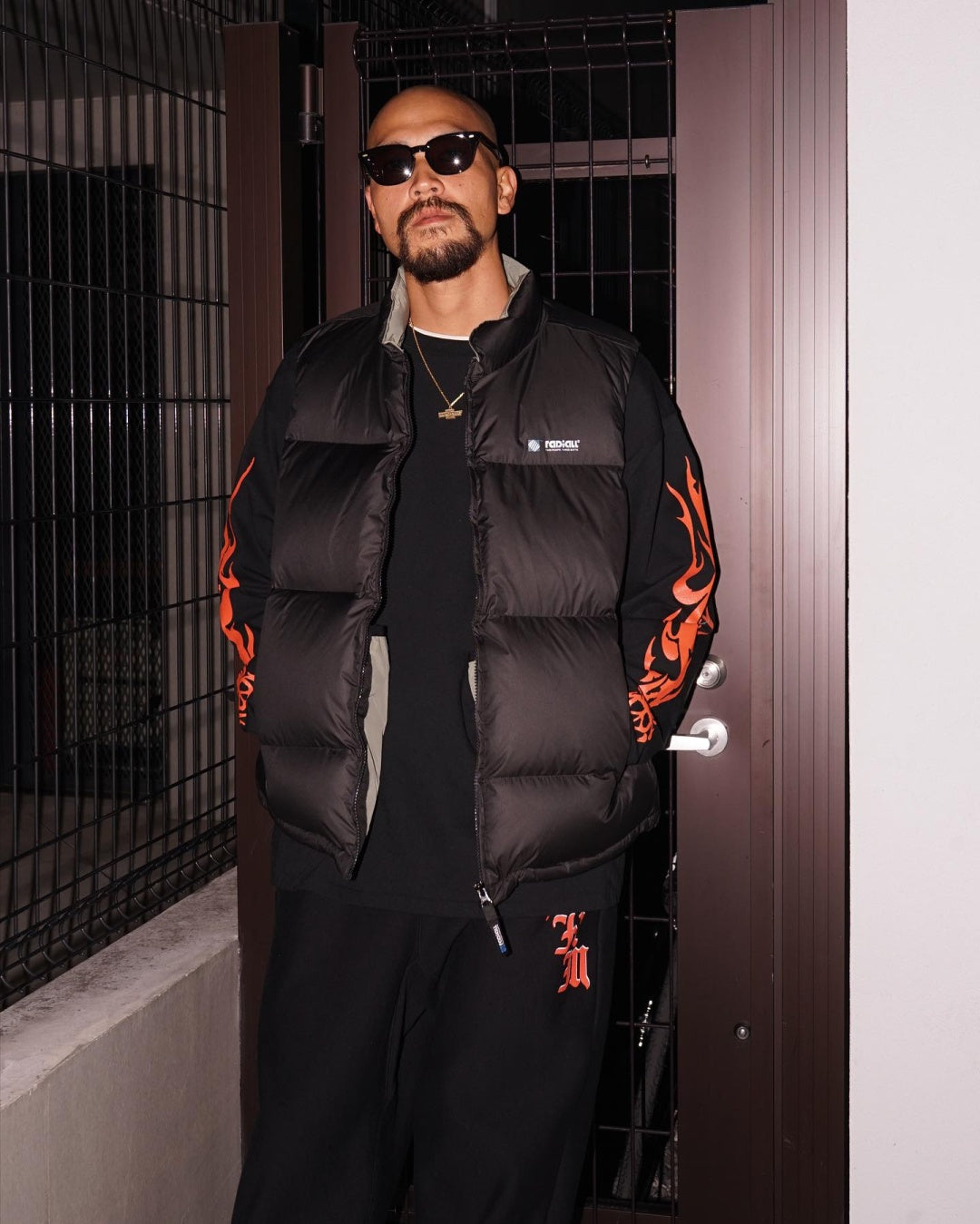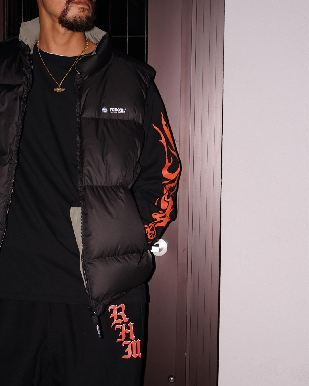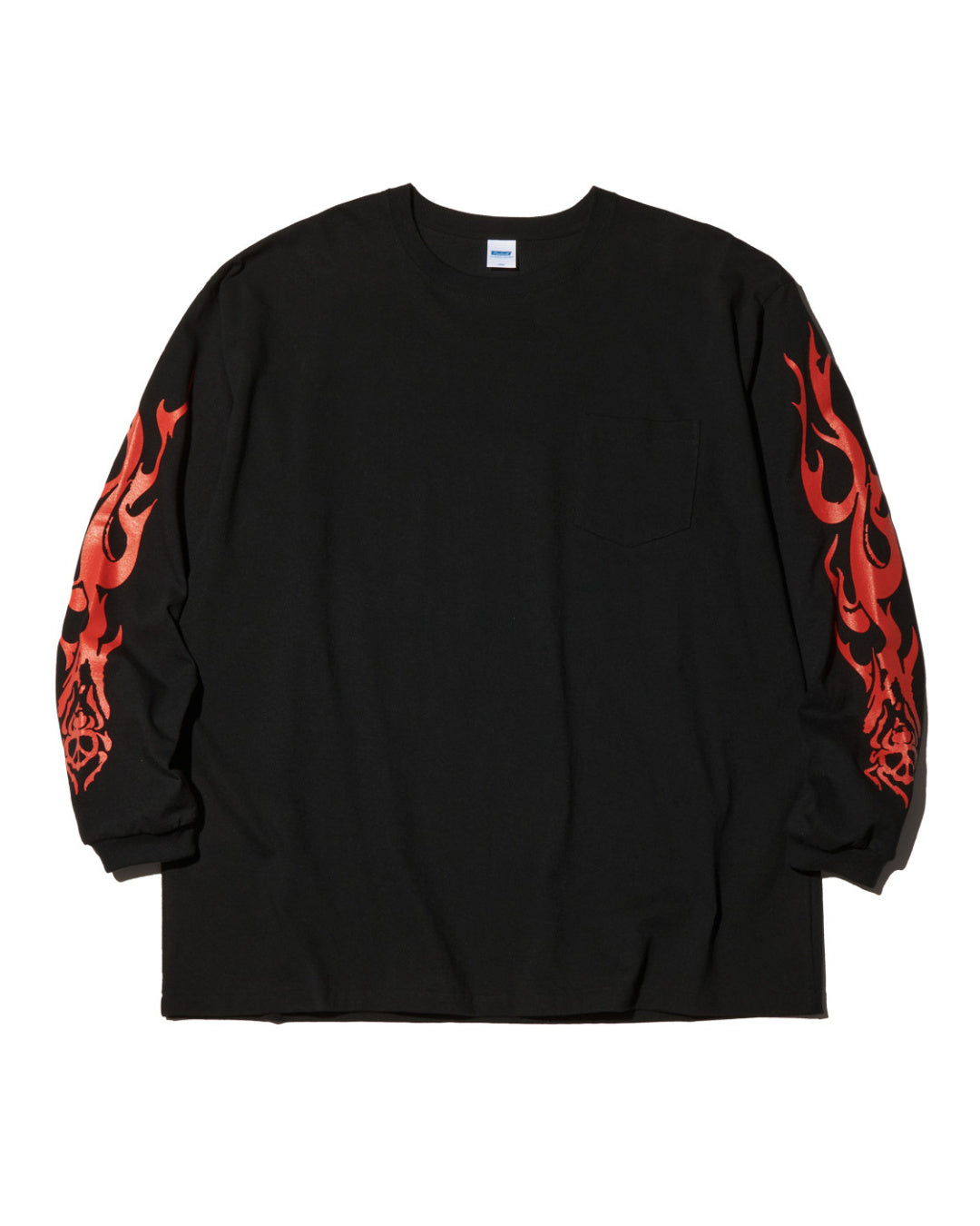 Graphic : 袖は創造と復活のシンボルとしされるスカラベとフレームス、バックはブランドロゴとその周りを∞を描き回り続けるキャラクター。