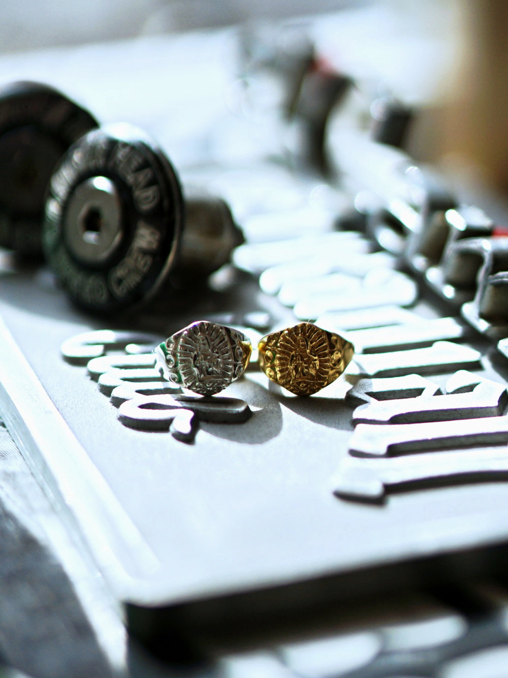 ヴィンテージのシグネットリングを意識した小ぶりなデザインで、日常的に着けやすい指に馴染むカーブで作製。