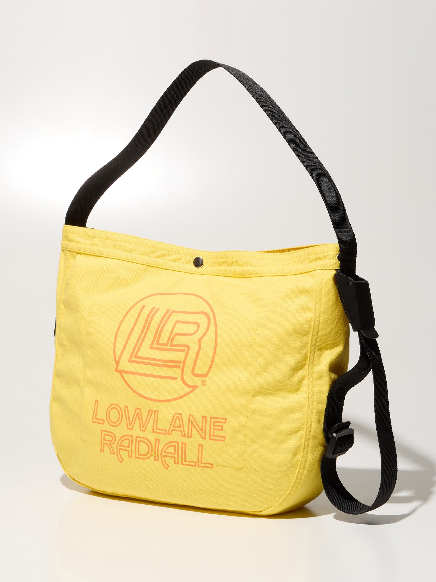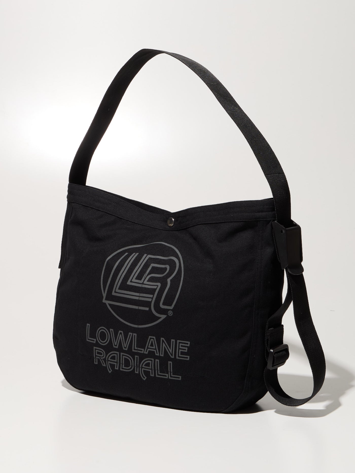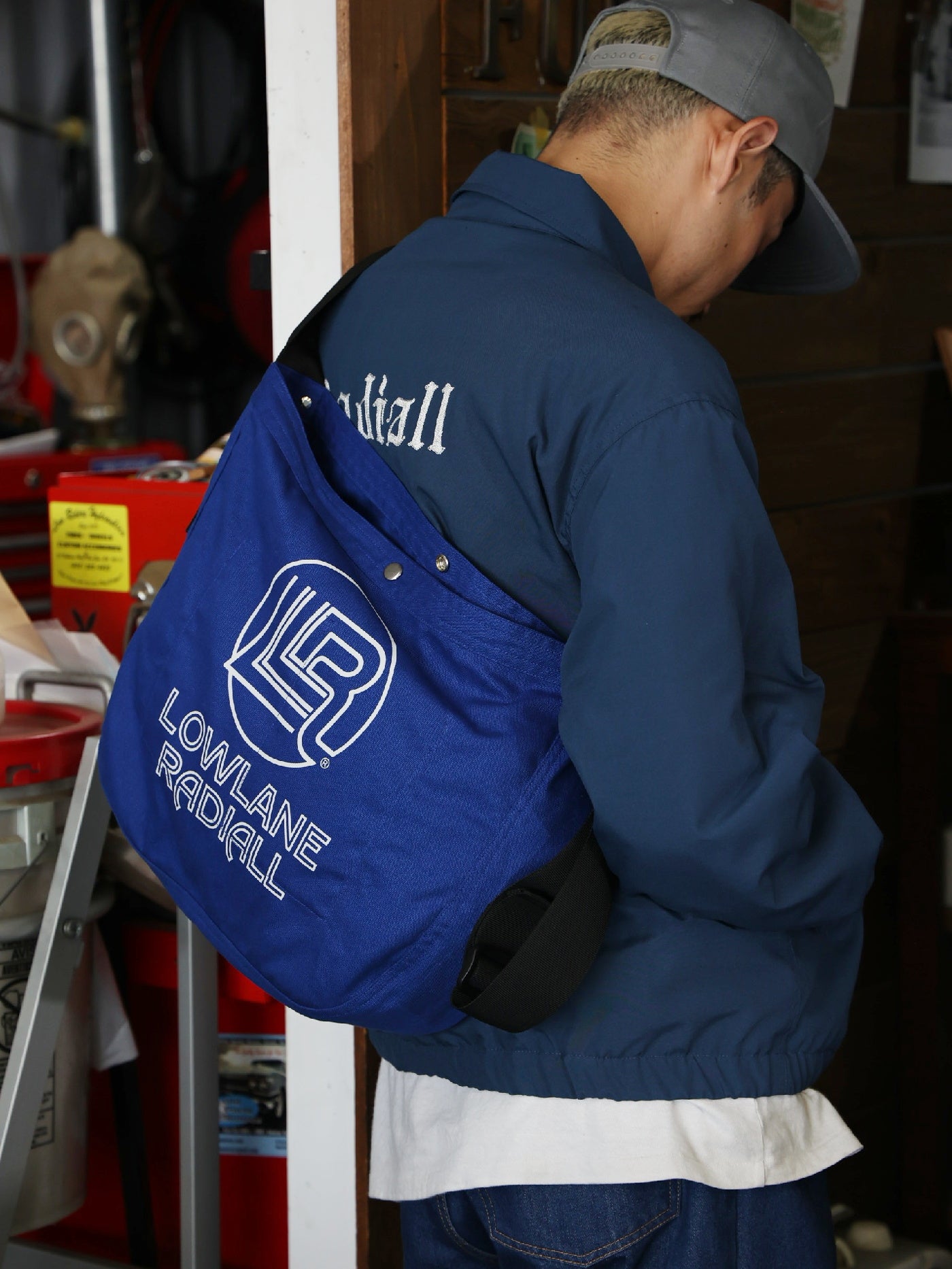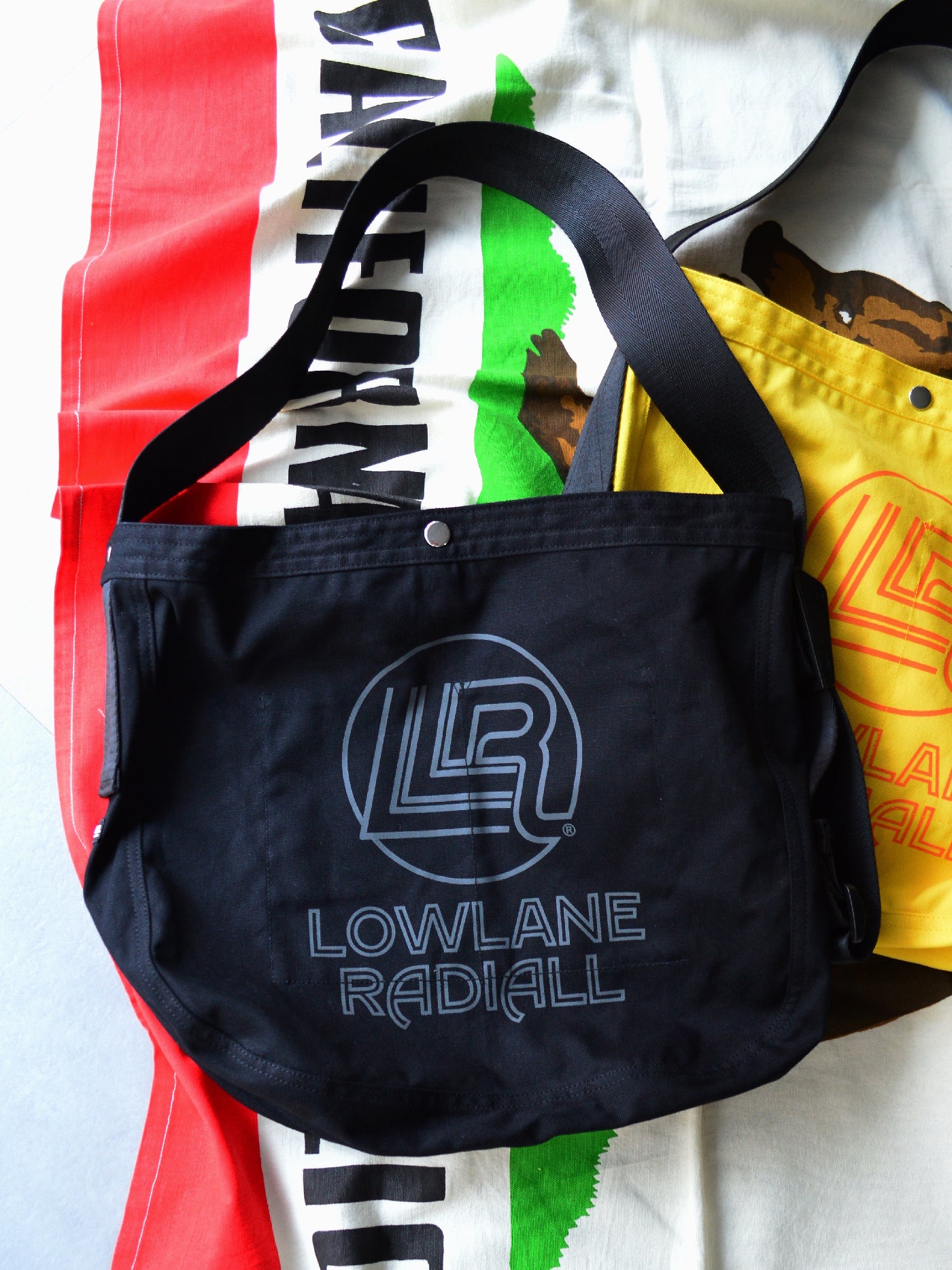 フロントに「LOWLANE RADIALL」のグラフィック、内側には大小のポケットを備えています。