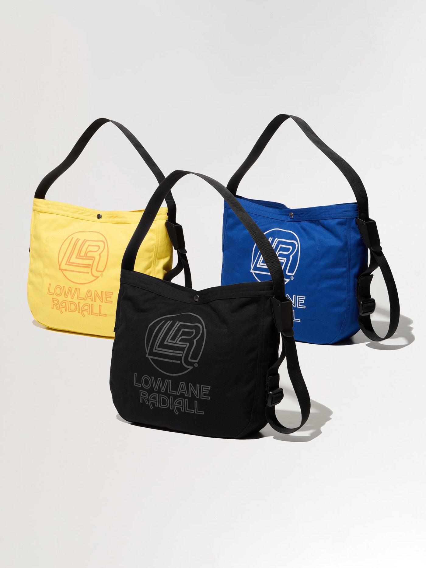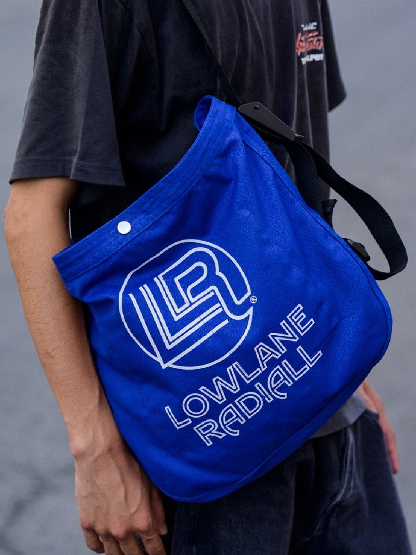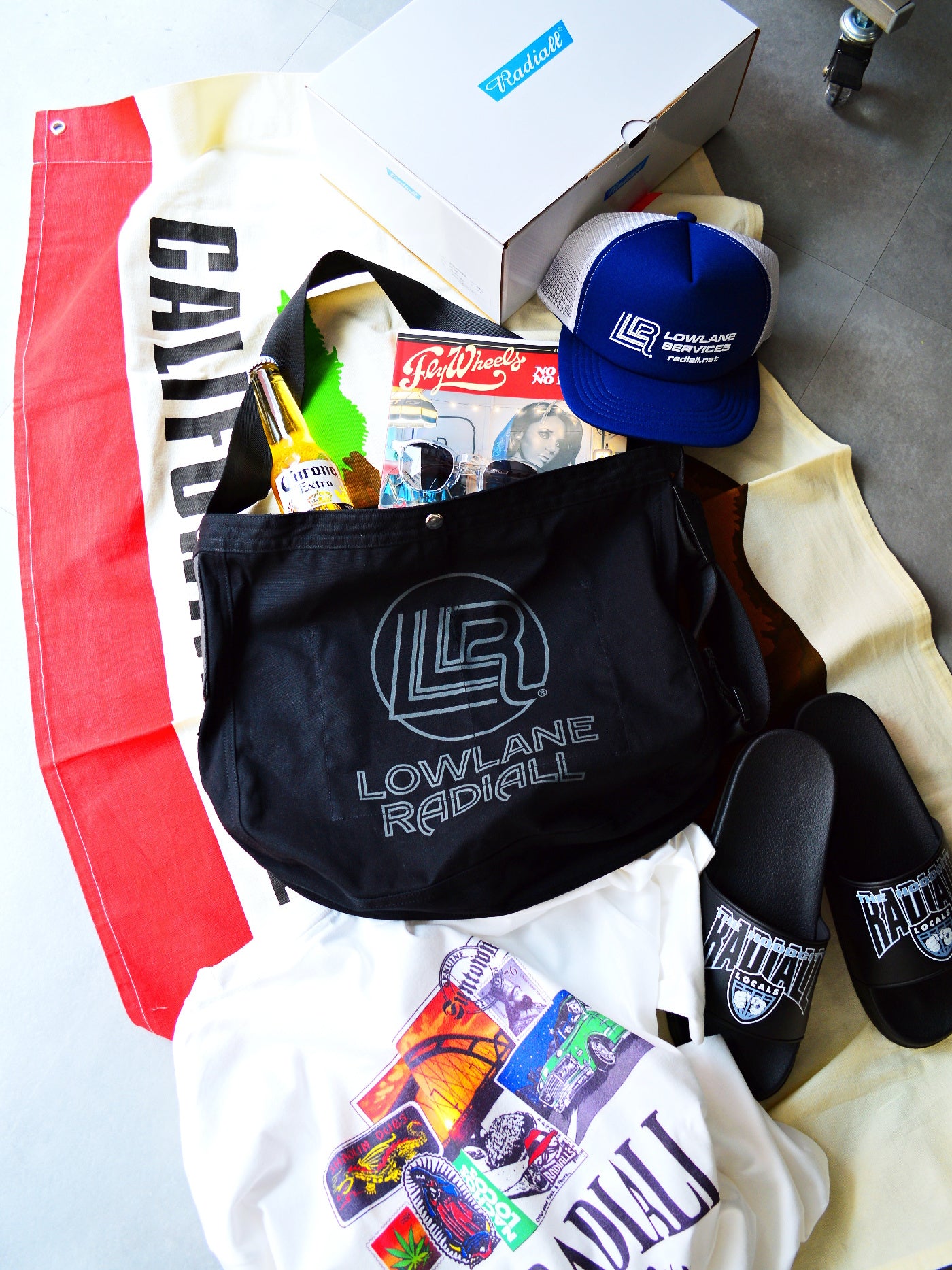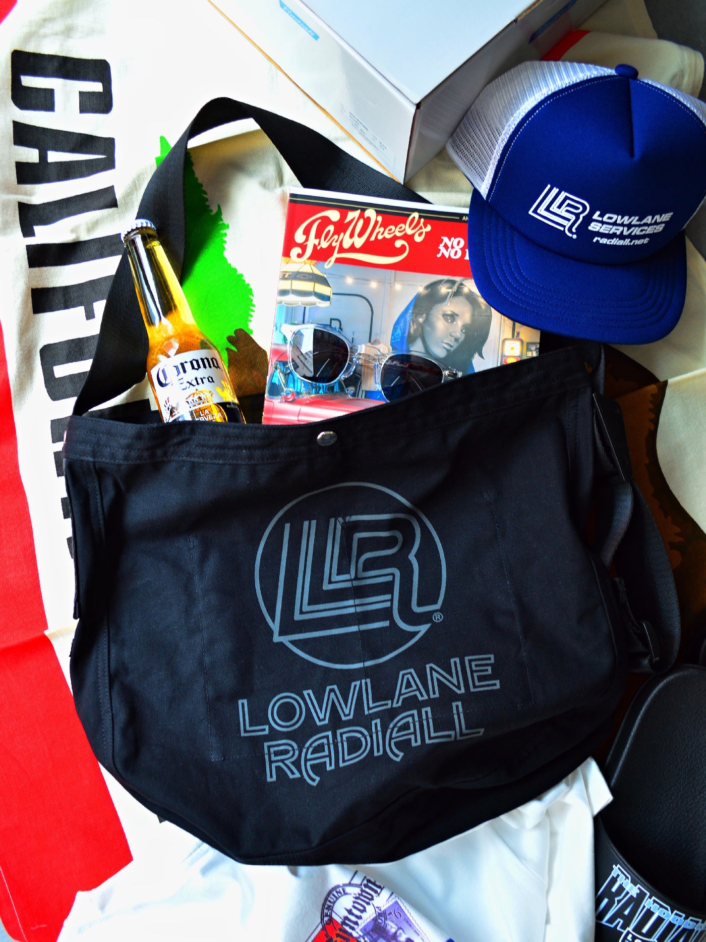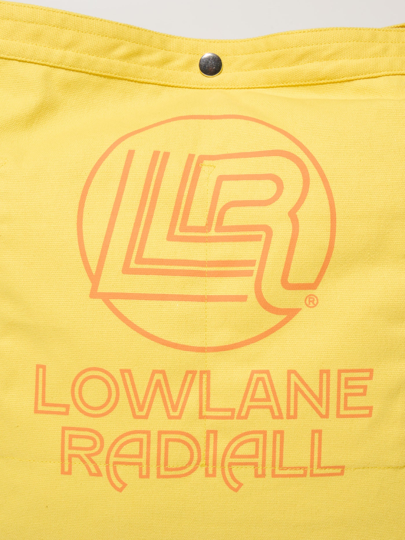 フロントに「LOWLANE RADIALL」のグラフィック、内側には大小のポケットを備えています。