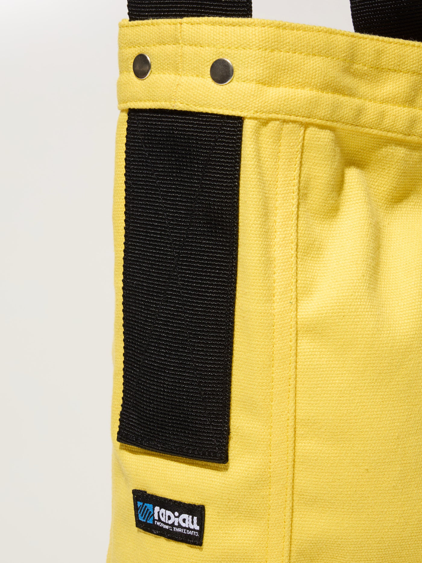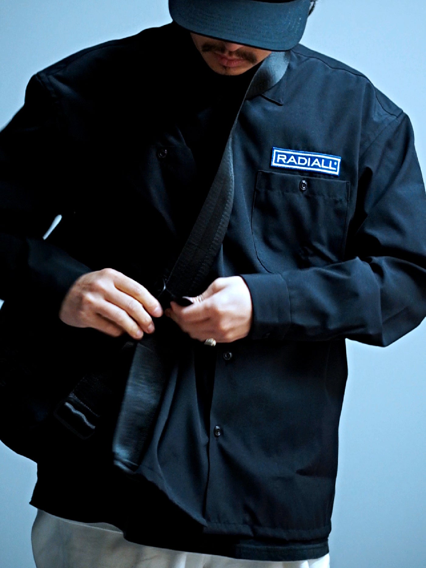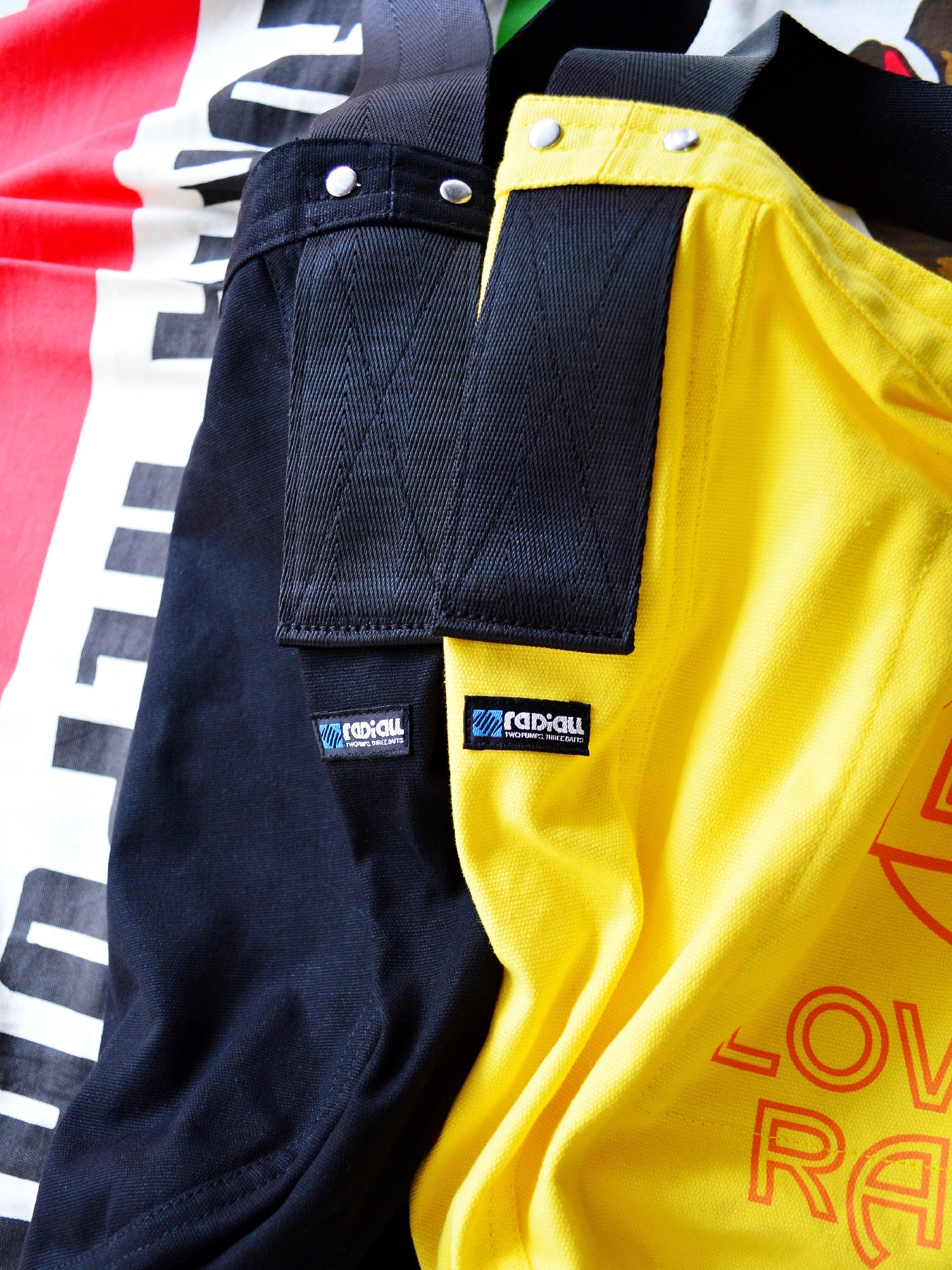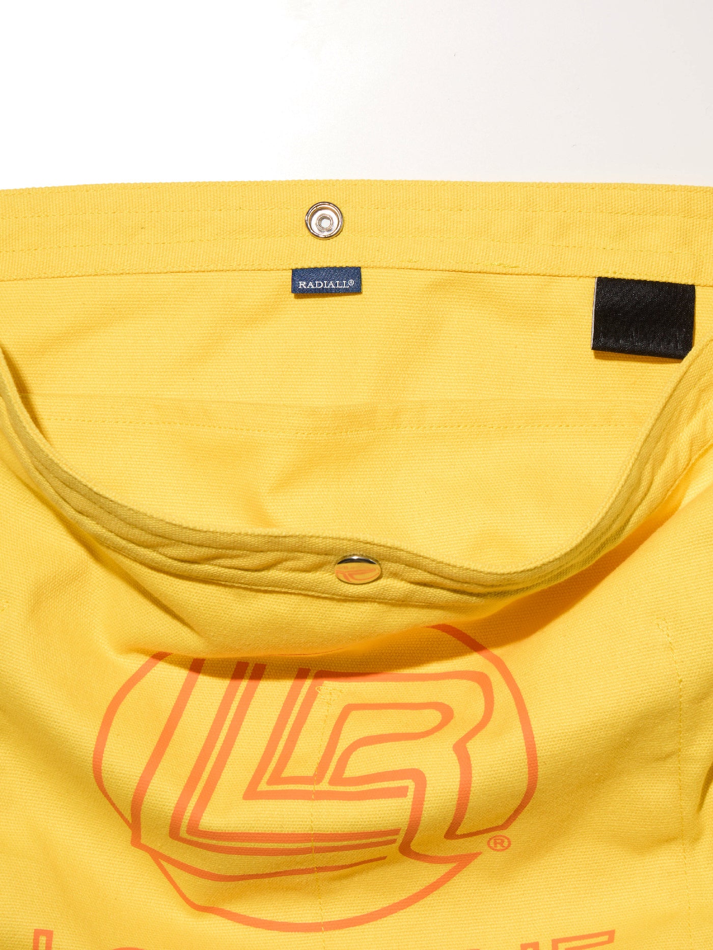 フロントに「LOWLANE RADIALL」のグラフィック、内側には大小のポケットを備えています。