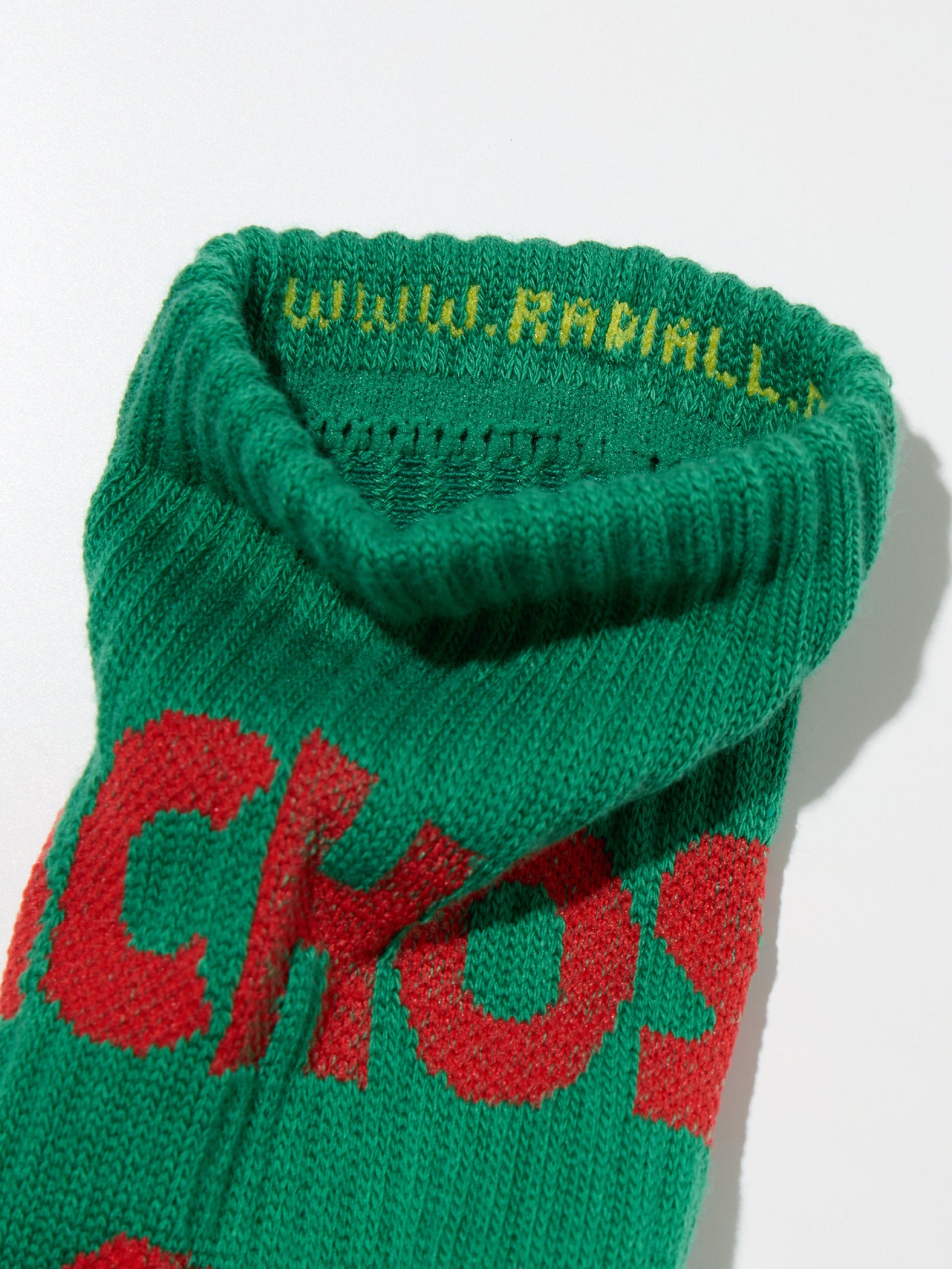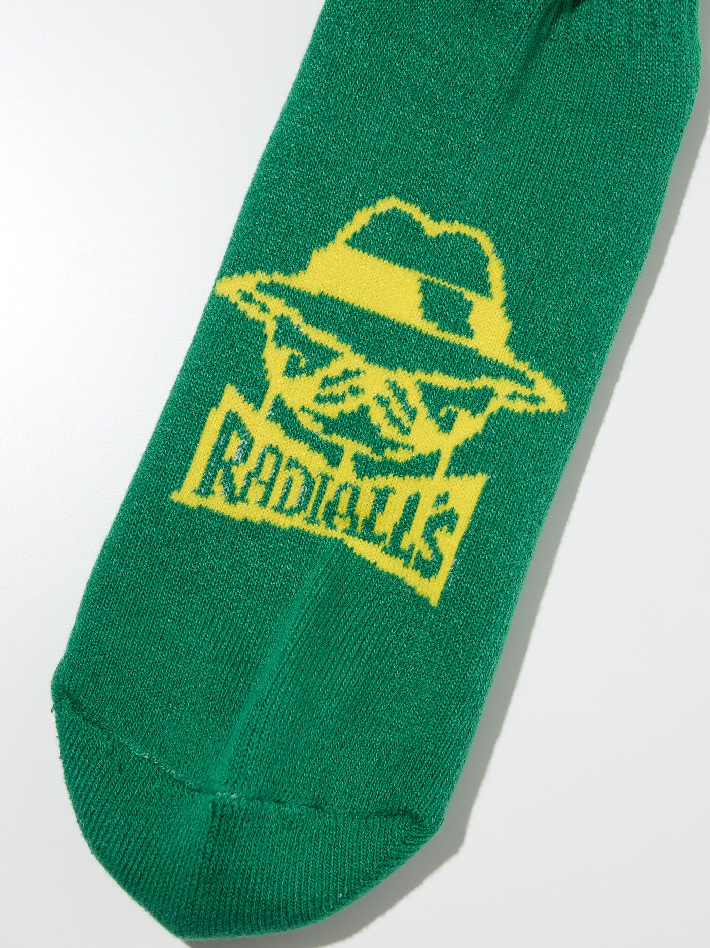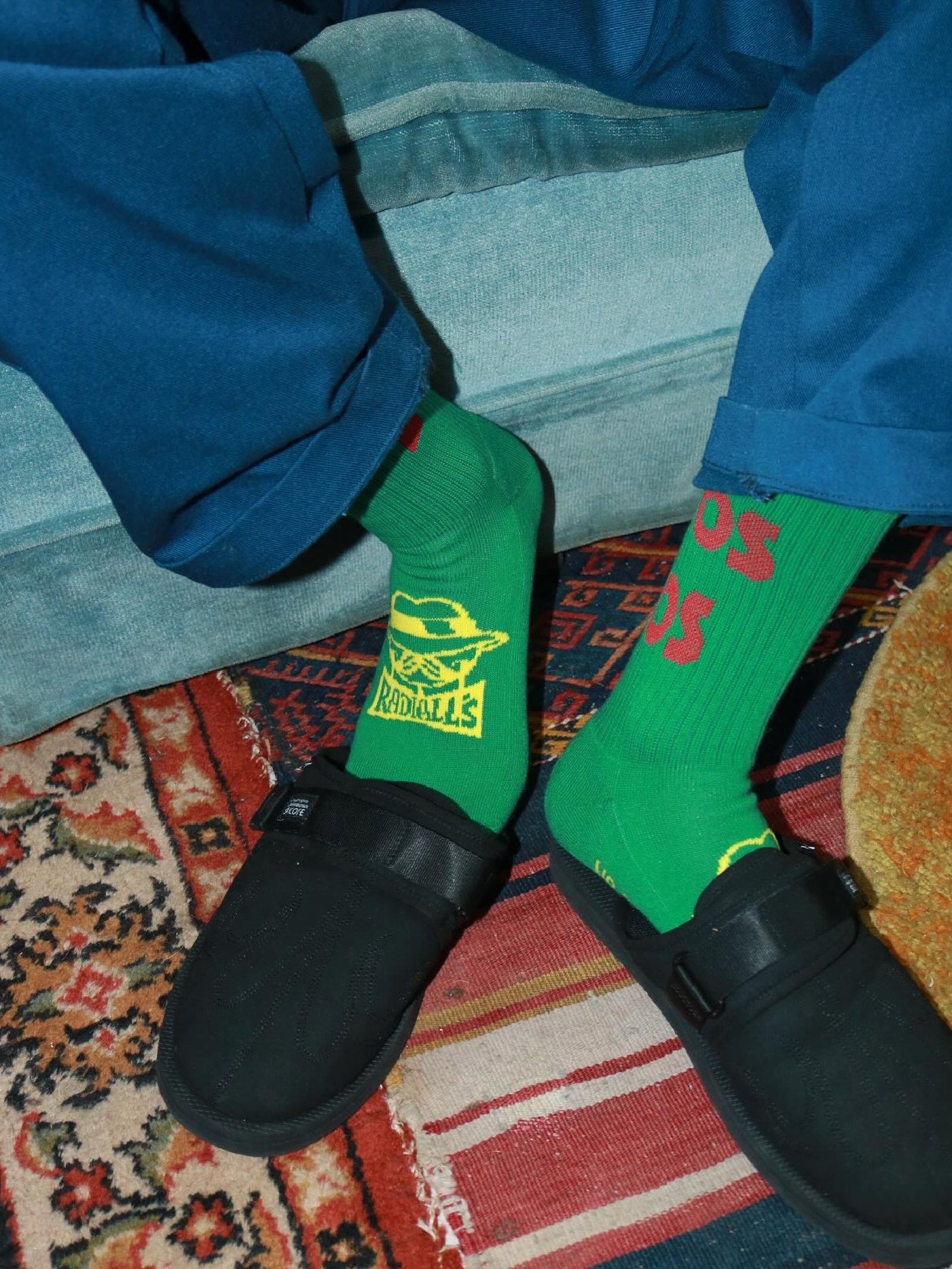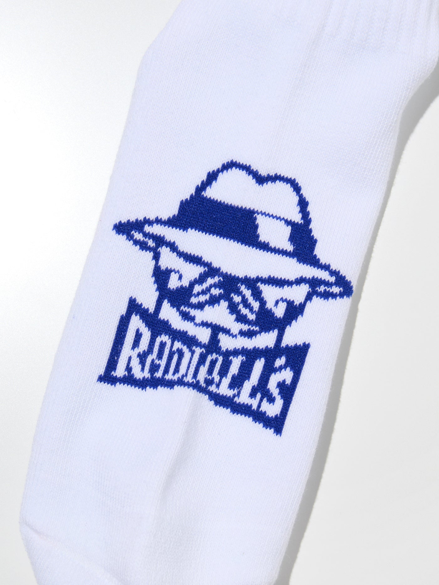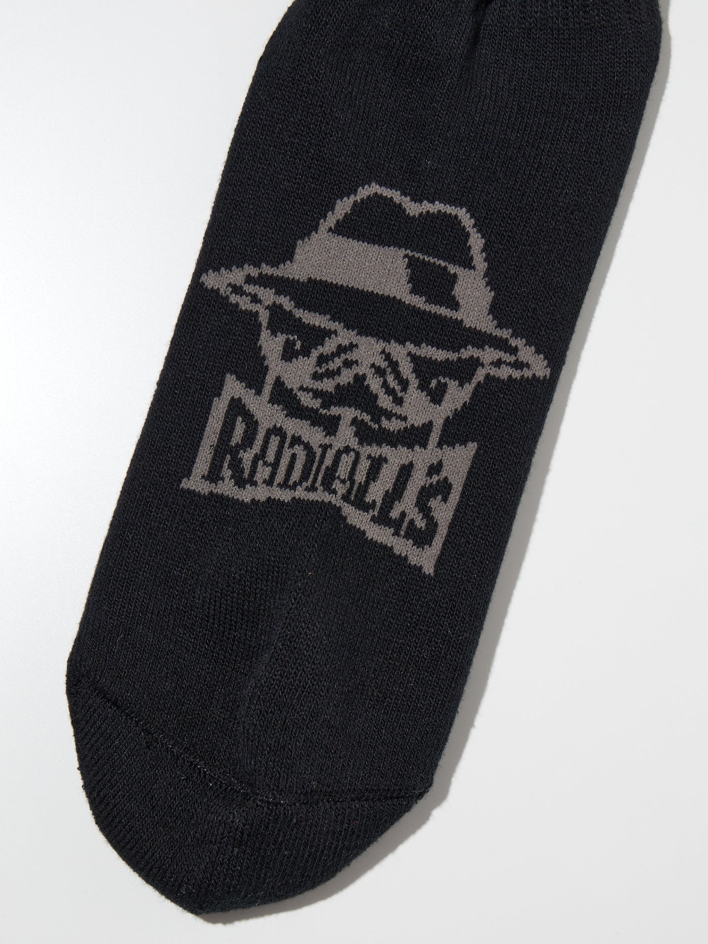 シャフト部分に「NACHOS LOCOS」、甲に某チップスブランドのパロディキャラクター、履き口裏に「WWW.RADIALL.NET」、足底には「NO STASH INSIDE」をデザイン。