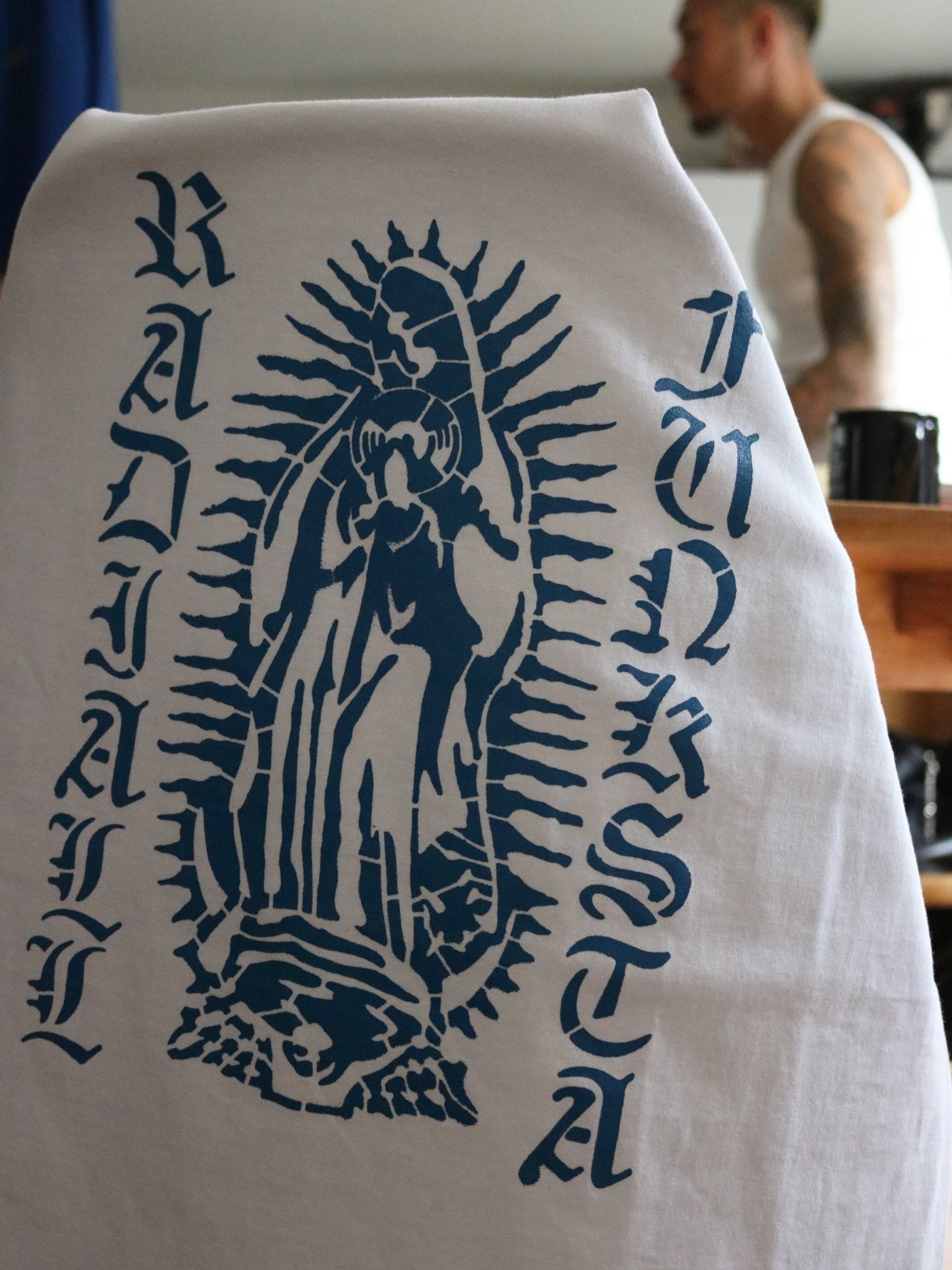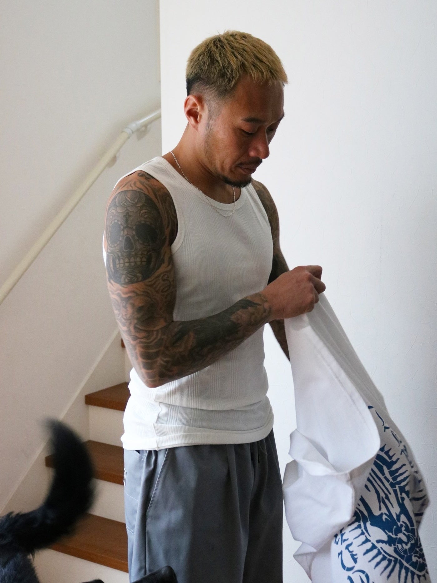 フロントの胸、バックにそれぞれラバープリントが入る。