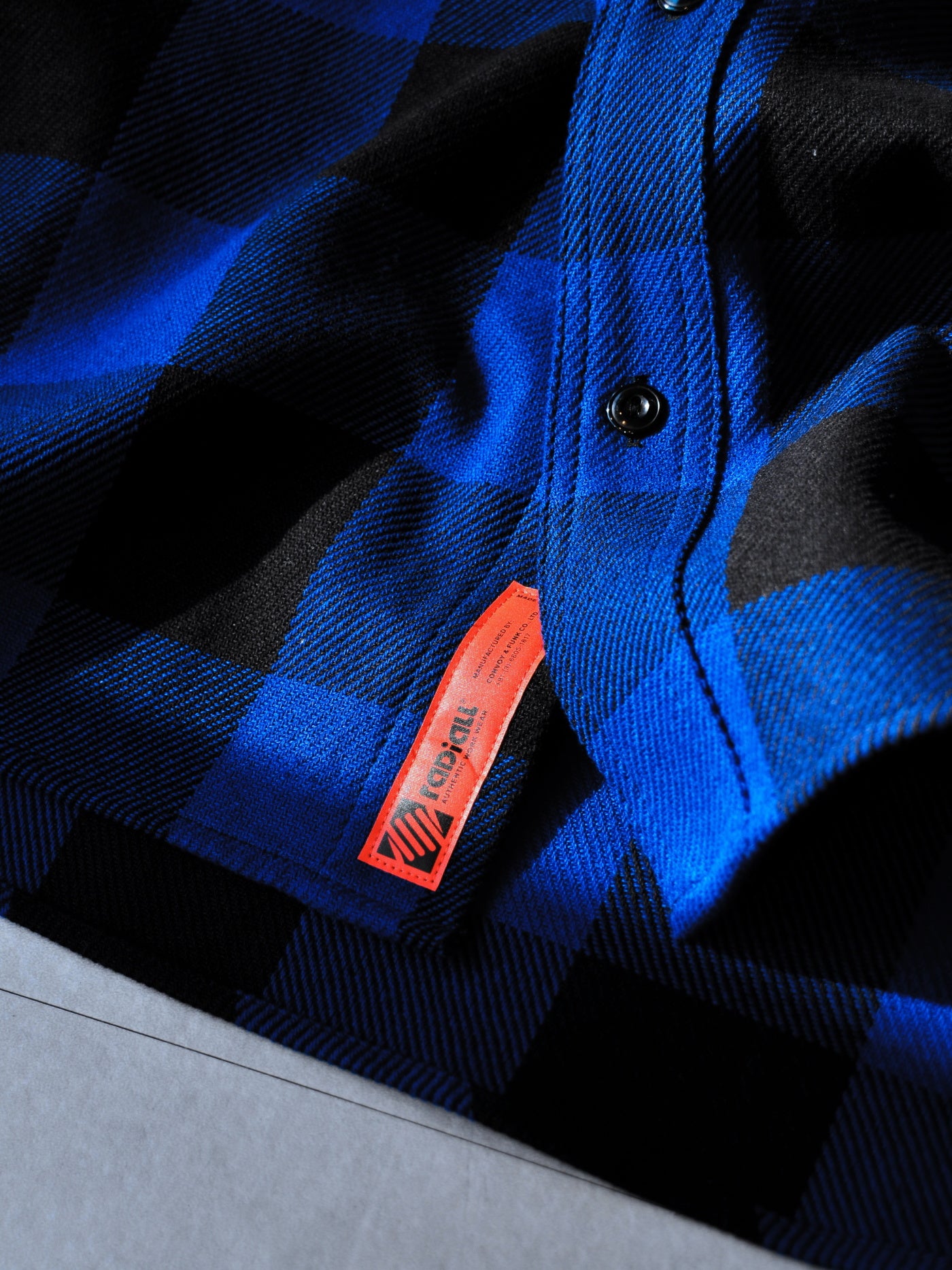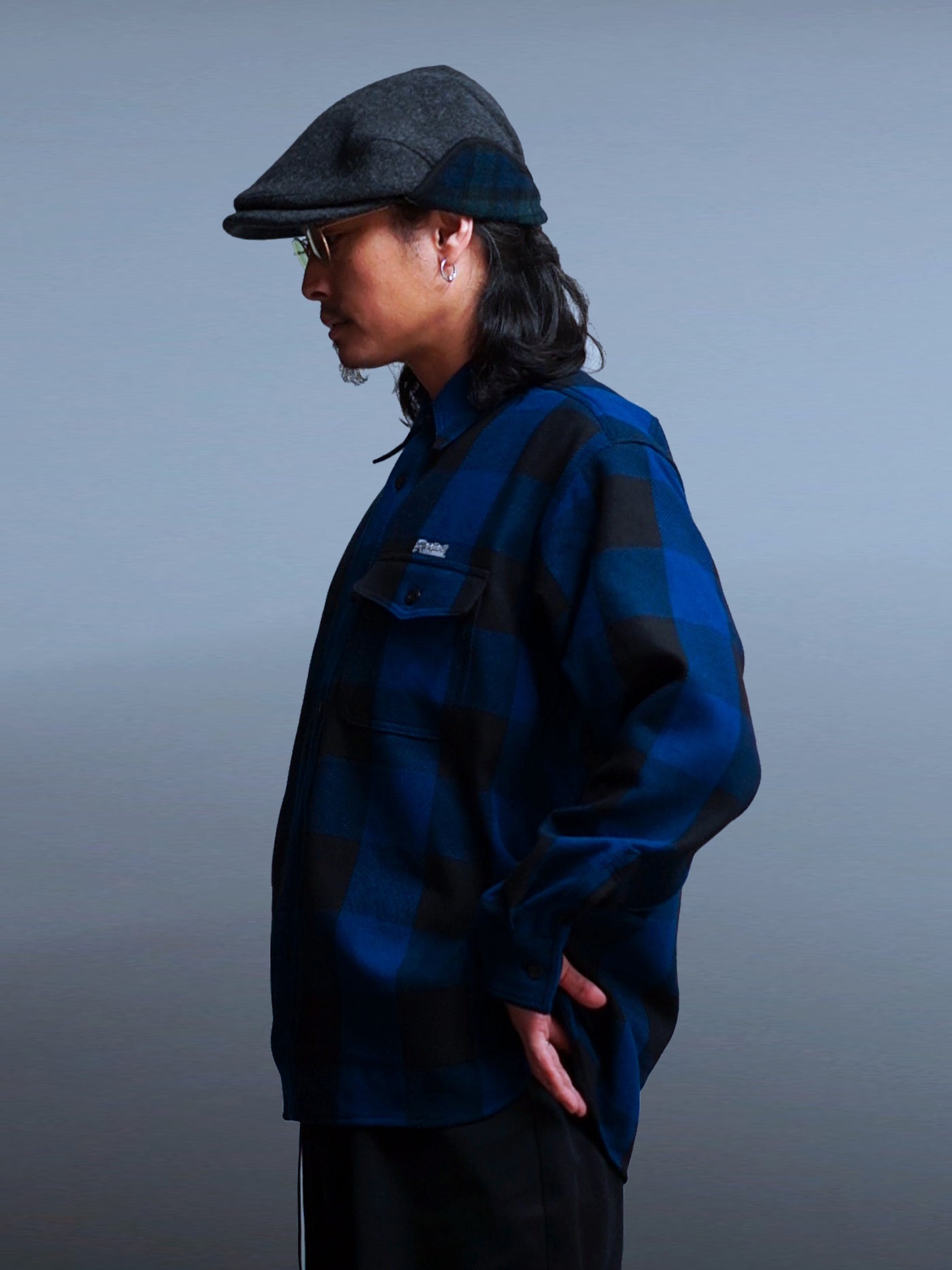 厚手で柔らかいコットンツイルのバッファローチェック生地を使用。
