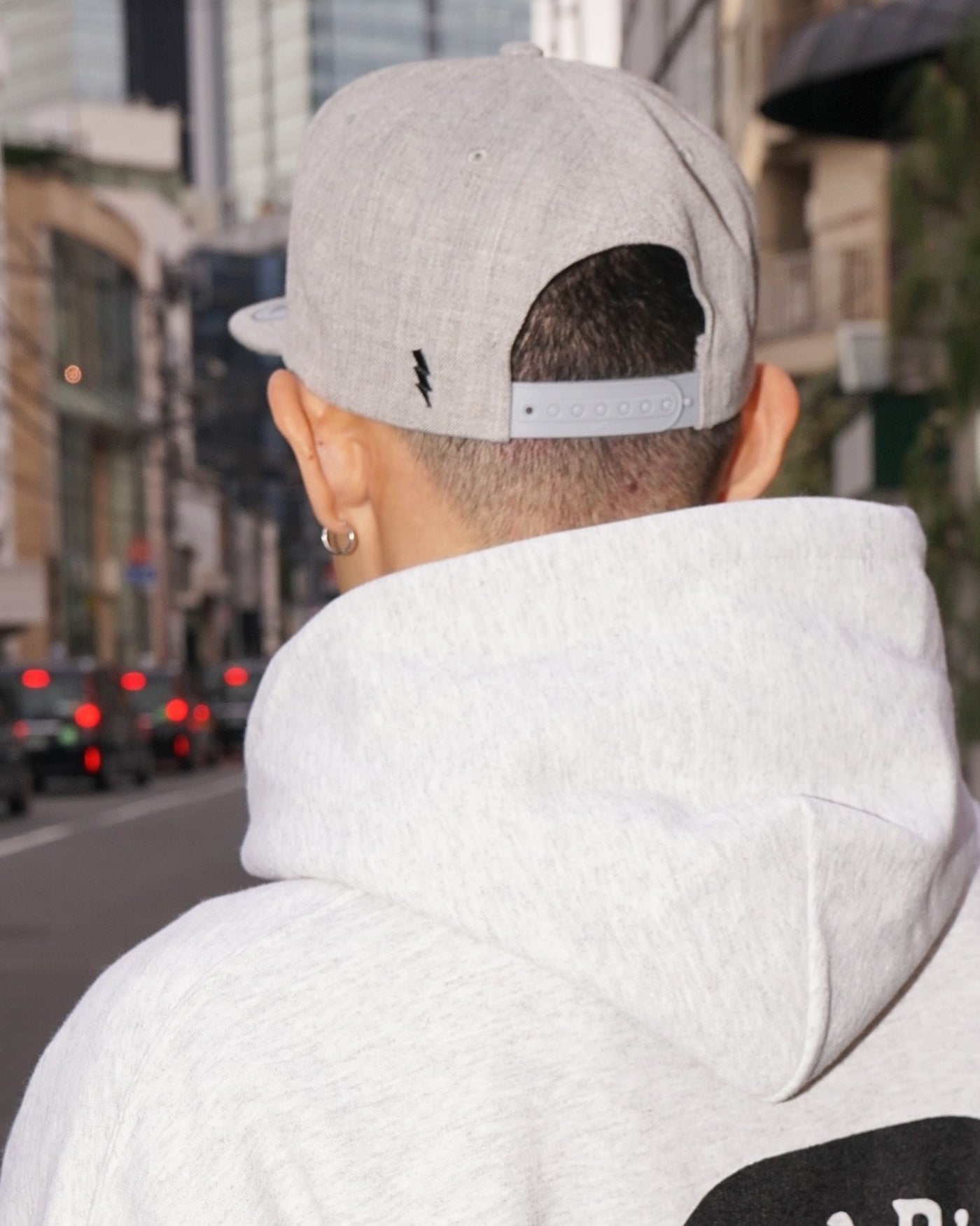 後ろのスナップバックアジャスターでサイズ調整が可能です。