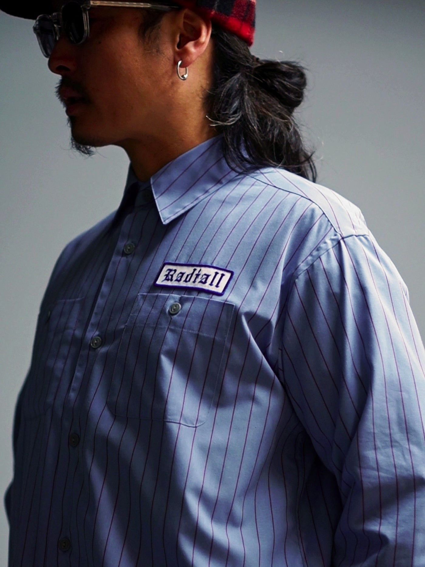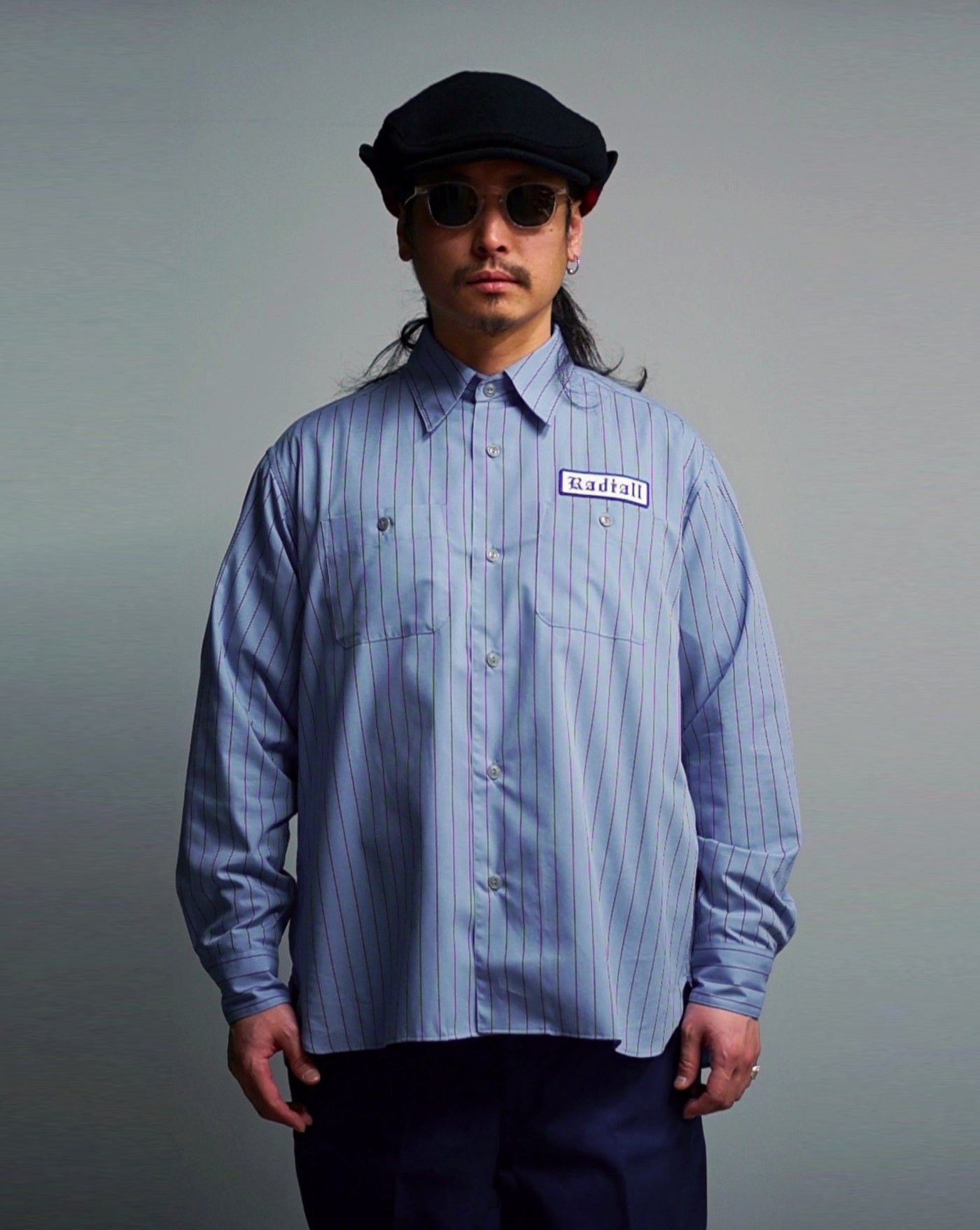 なぜこのシリーズはサイズが大きいのかと考えるとやはりデザインソースがレッドキャップなどのユニフォームスタイルのワークシャツがベースだからだと思います。ユニフォームではシャツの裾はタックインが基本で、大きく動いても裾が外に出てしまわないように着丈が長くパターンとしてとても細長い作りなのですが、そのシルエットまでなぞったのではデイリーウェアとして使いにくくなってしまうので、本物の雰囲気と使い勝手の良さを上手くバランスさせた結果がこのラディアルオリジナルパターンのストライプシャツシリーズであり、完成度が高すぎるが故ずっとパターンを変更せず定番としてリリースを続けているのだと思います。